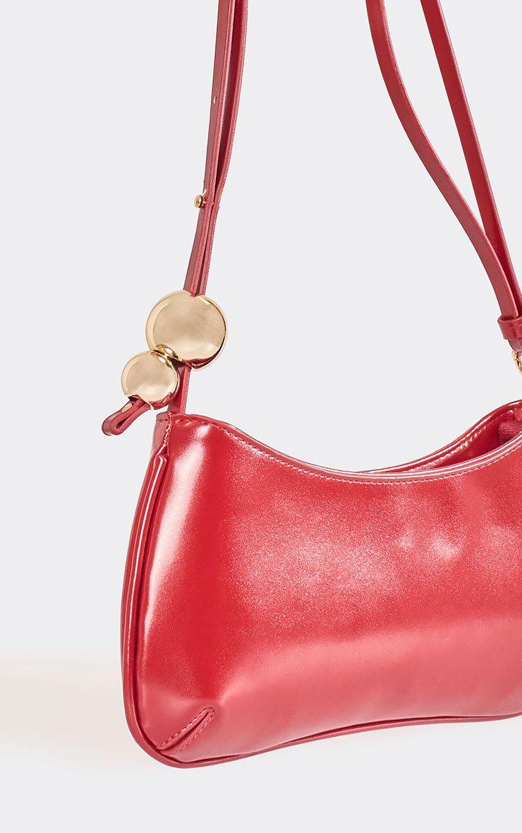 Devon Buckle Detail Shaped Shoulder Bag In Red Faux Leather