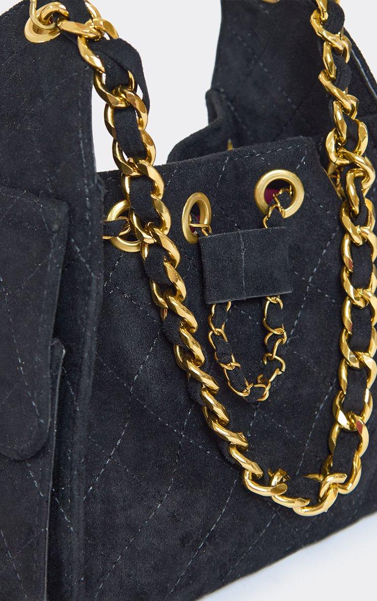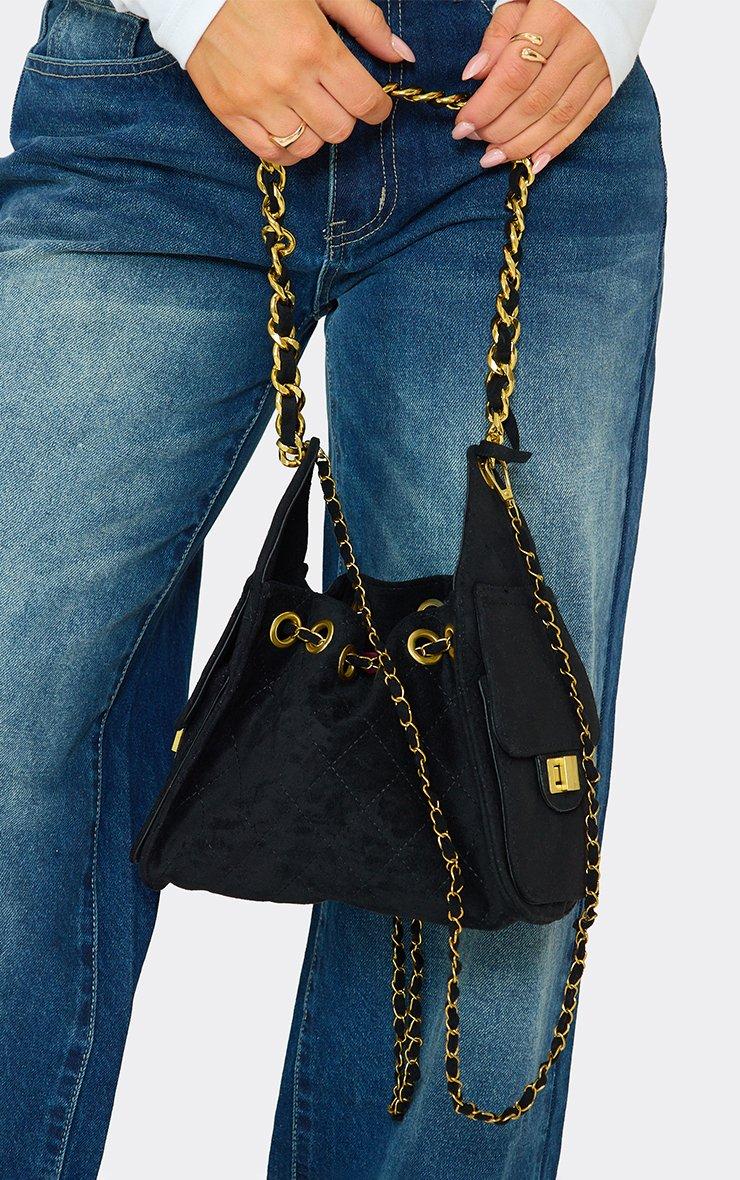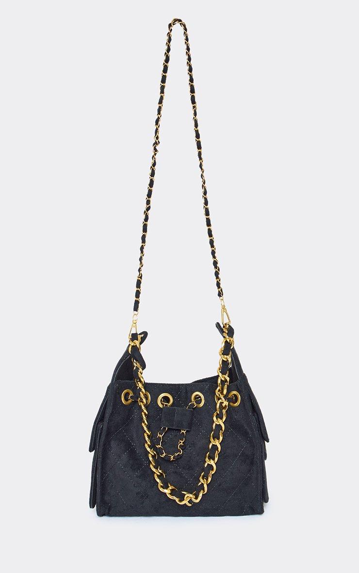 Smash Chain Strap Detail Shaped Shoulder Bag In Black Faux Suede