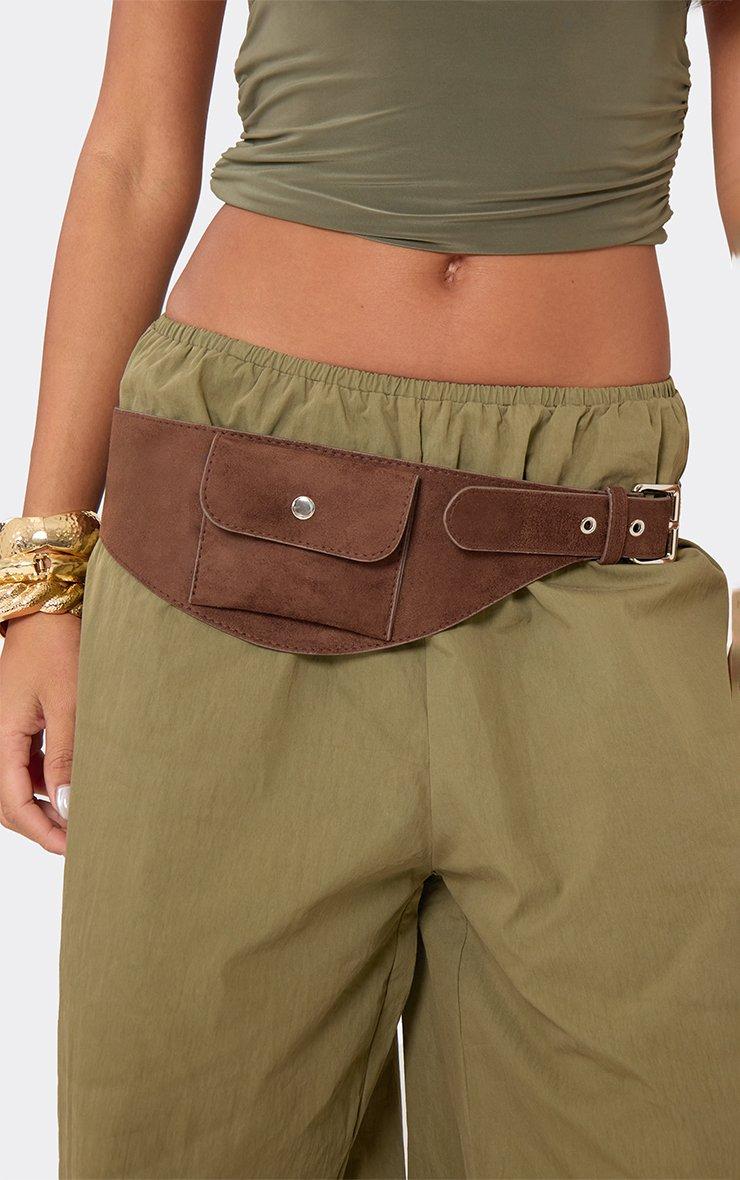 Albee Pouch Detail Belt Bag In Brown Faux Suede