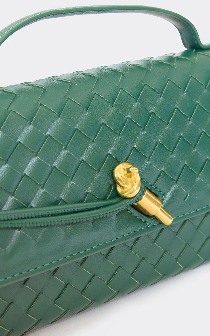 Benjen Woven Detail Shaped Cross Body Bag In Khaki Faux Suede