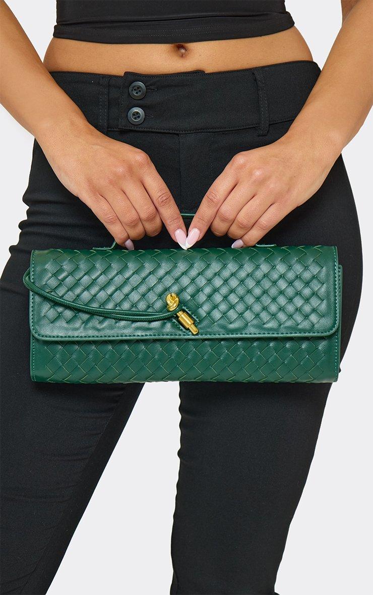 Dibz Woven Detail Zipped Vanity Bag In Khaki Faux Suede