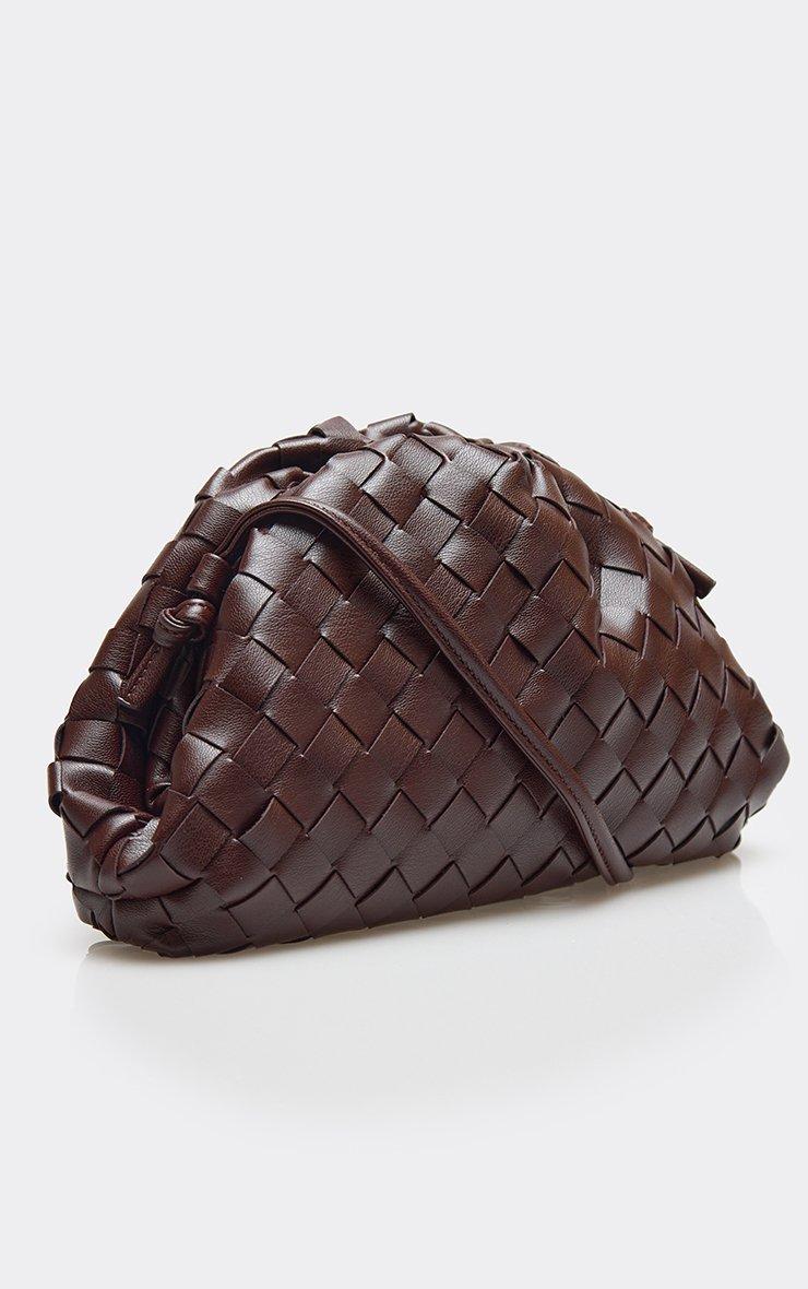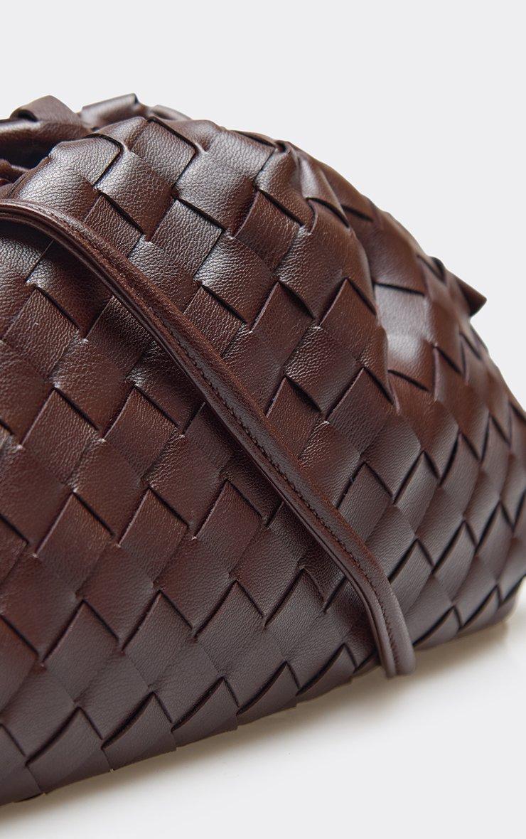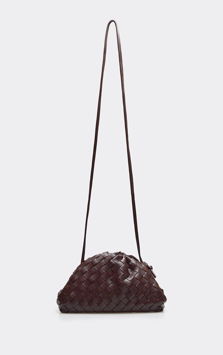 Wander Woven Detail Shaped Cross Body Bag In Brown Faux Leather