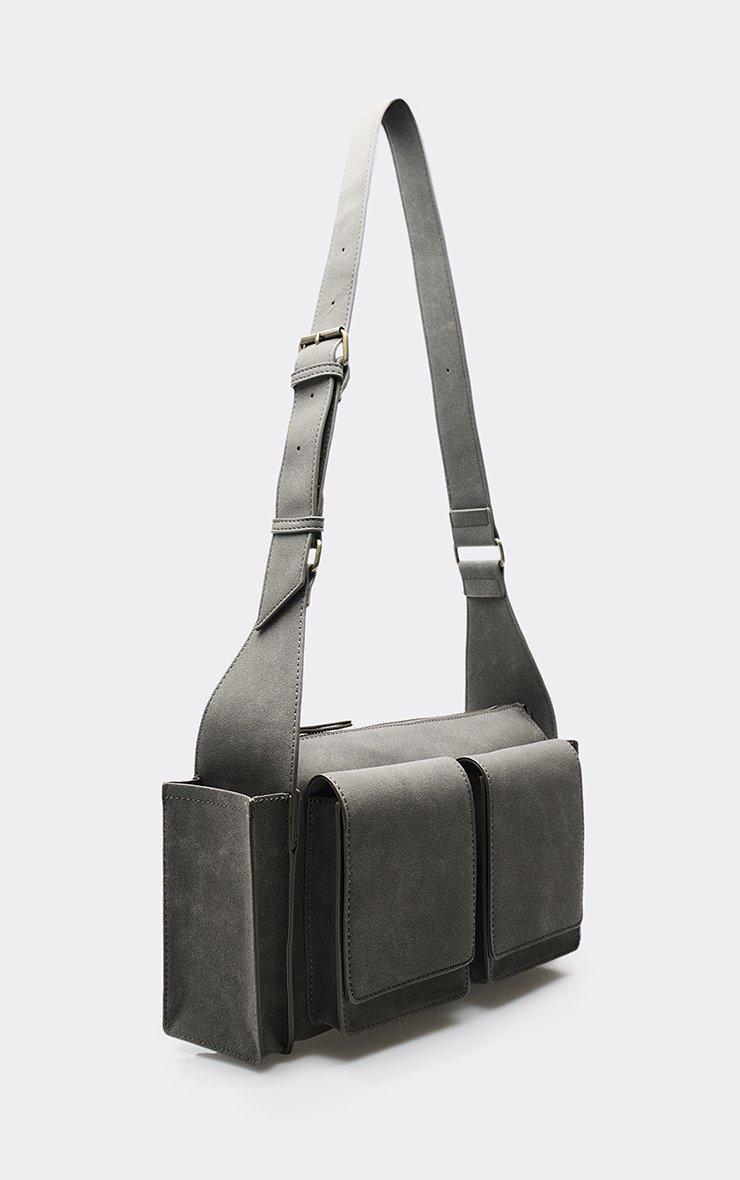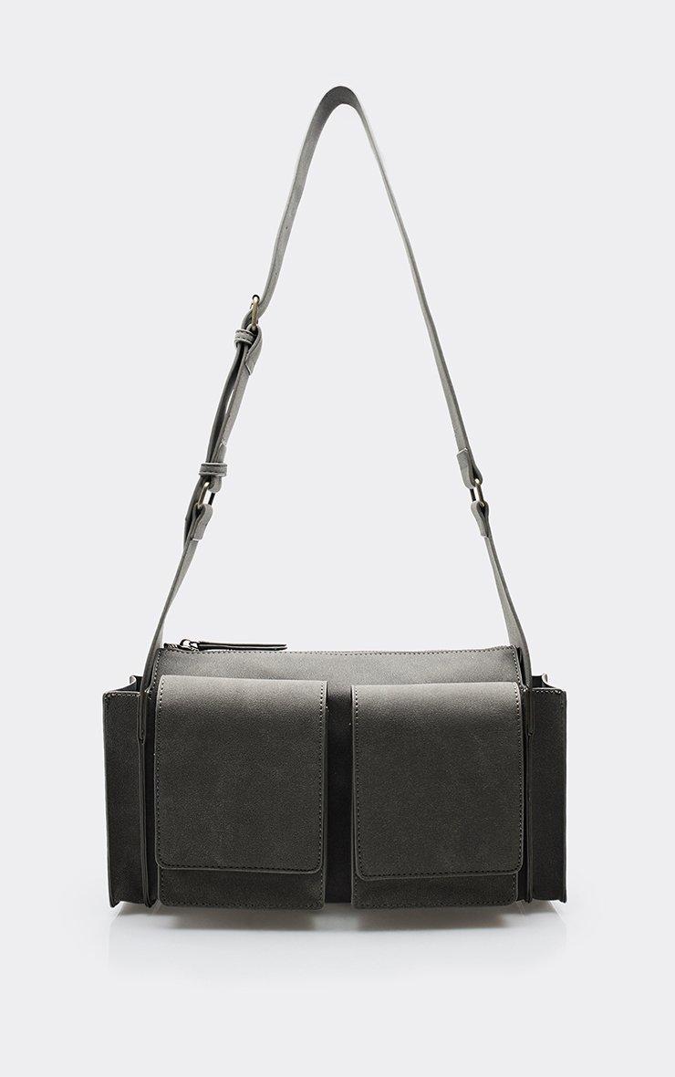 binx pocket detail rectangle shaped shoulder bag in grey faux suede