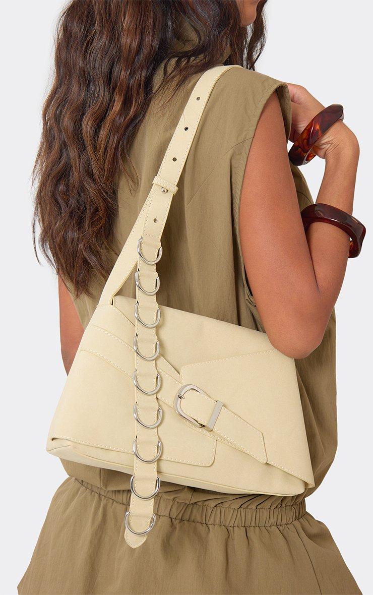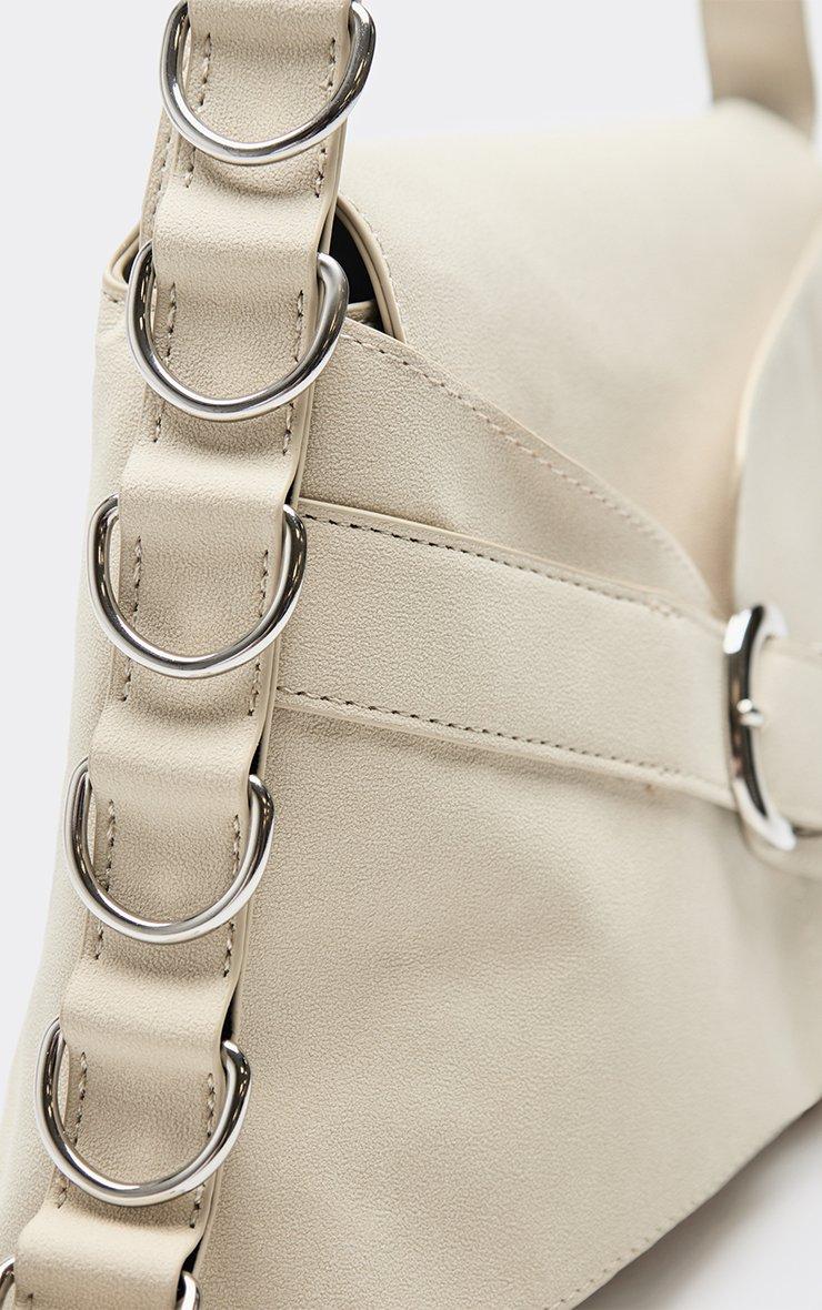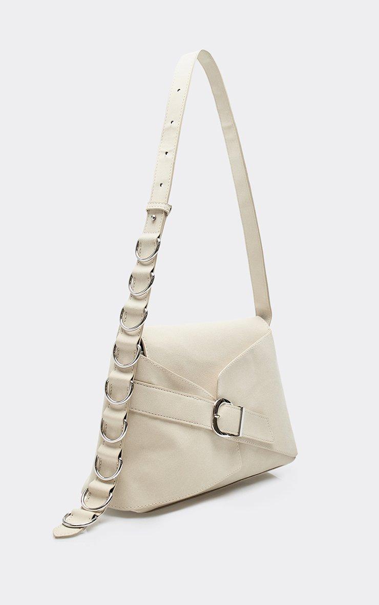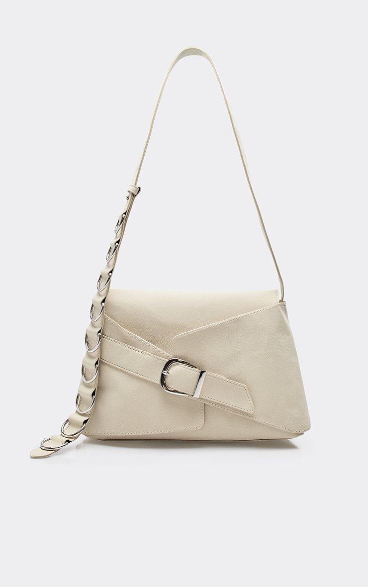 Calvin Buckle Ring Detail Shoulder Bag In Beige Faux Suede