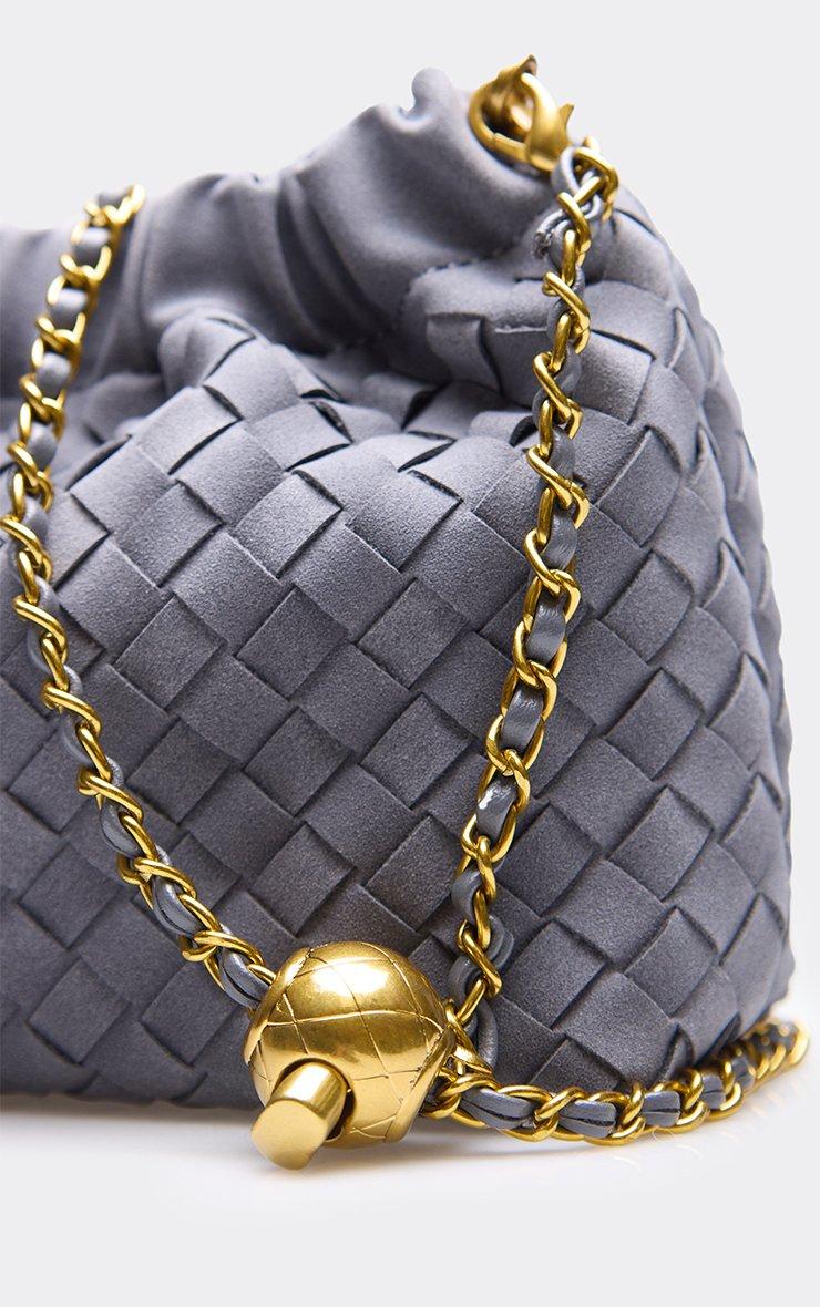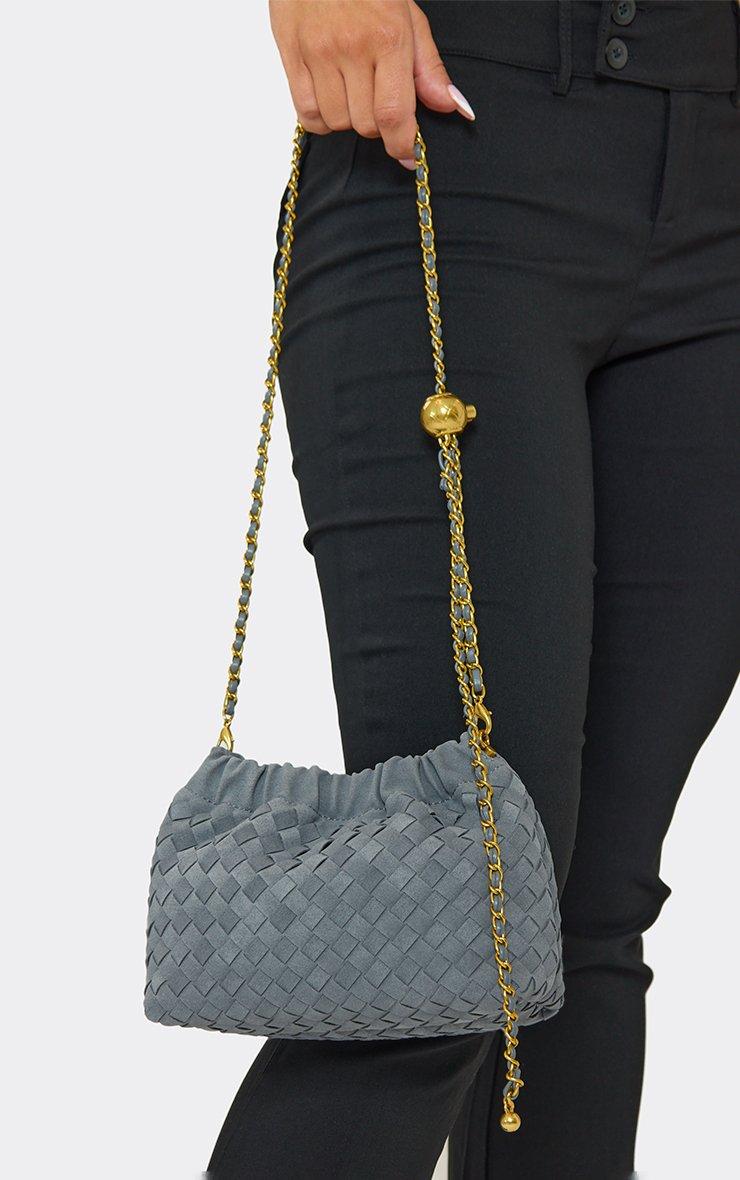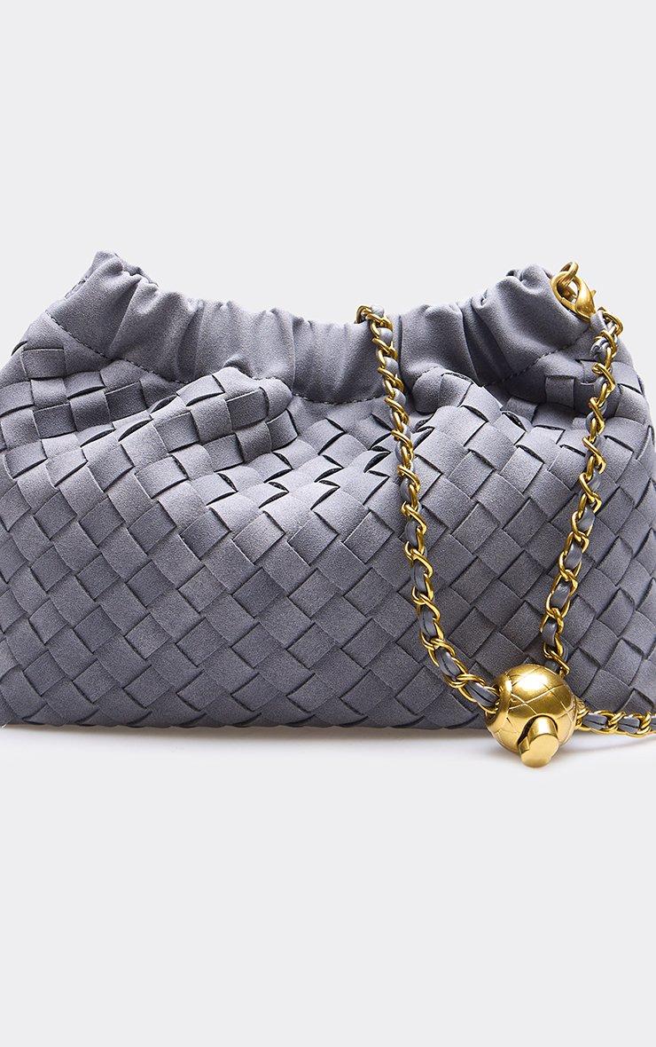 Bowee Chain Strap Cross Body Bag In Grey Faux Suede