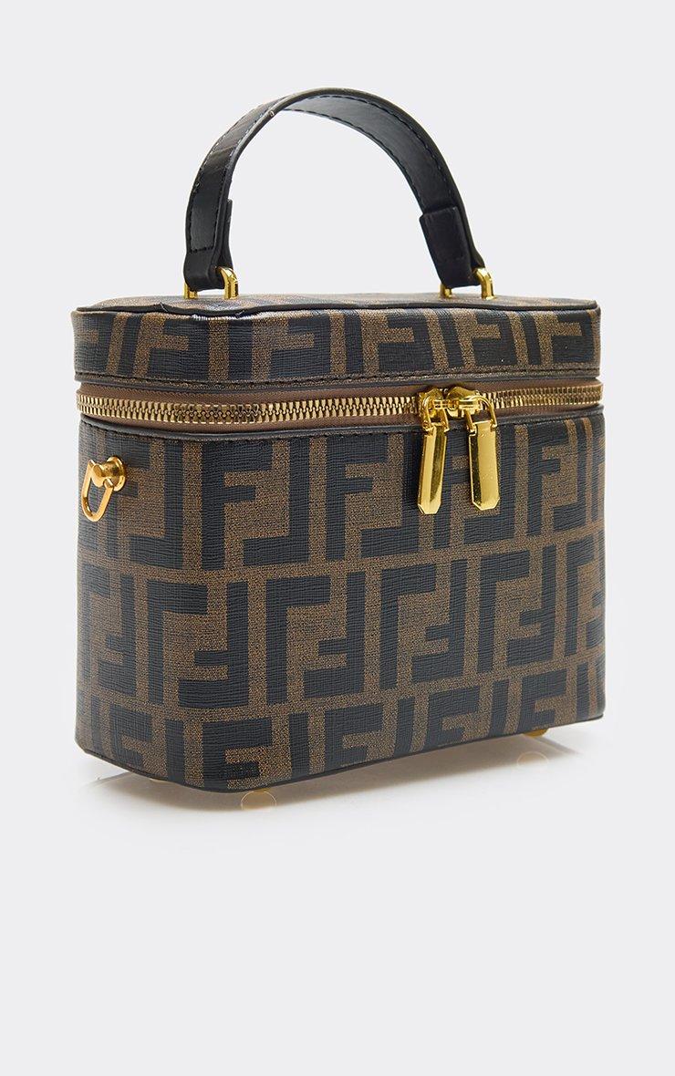 Bennie Logo Detail Vanity Shaped Cross Body Bag In Brown Faux Suede