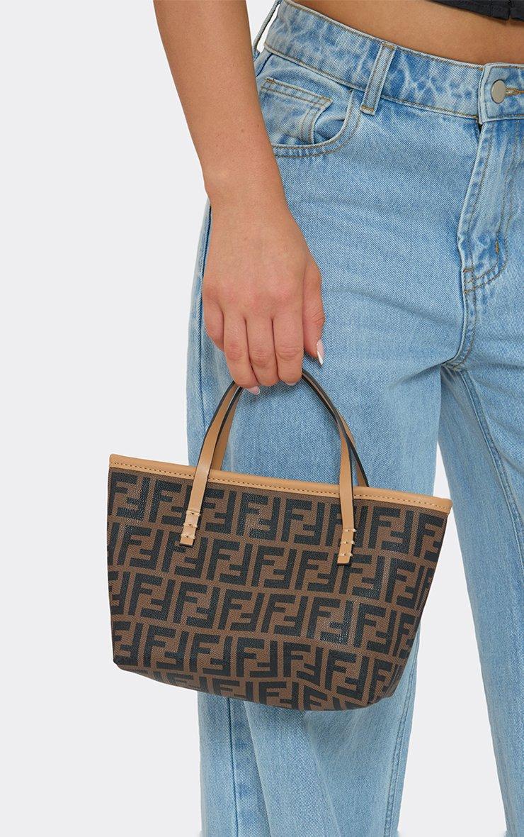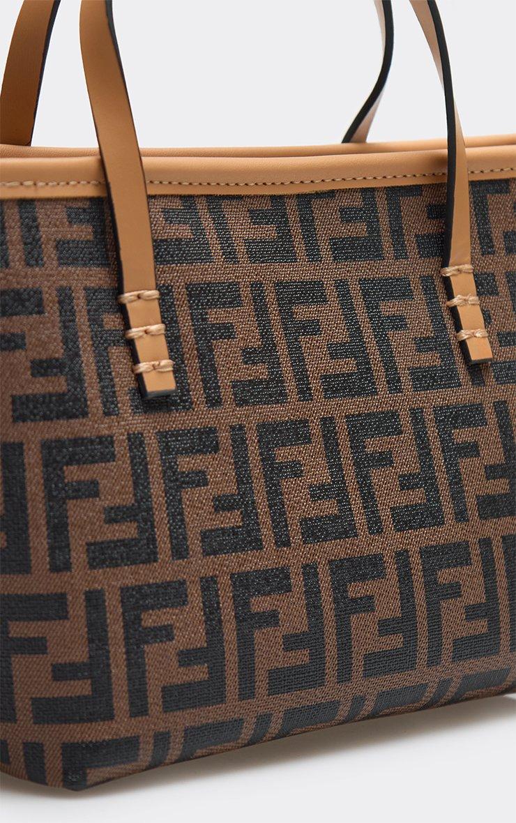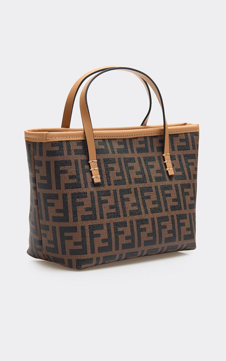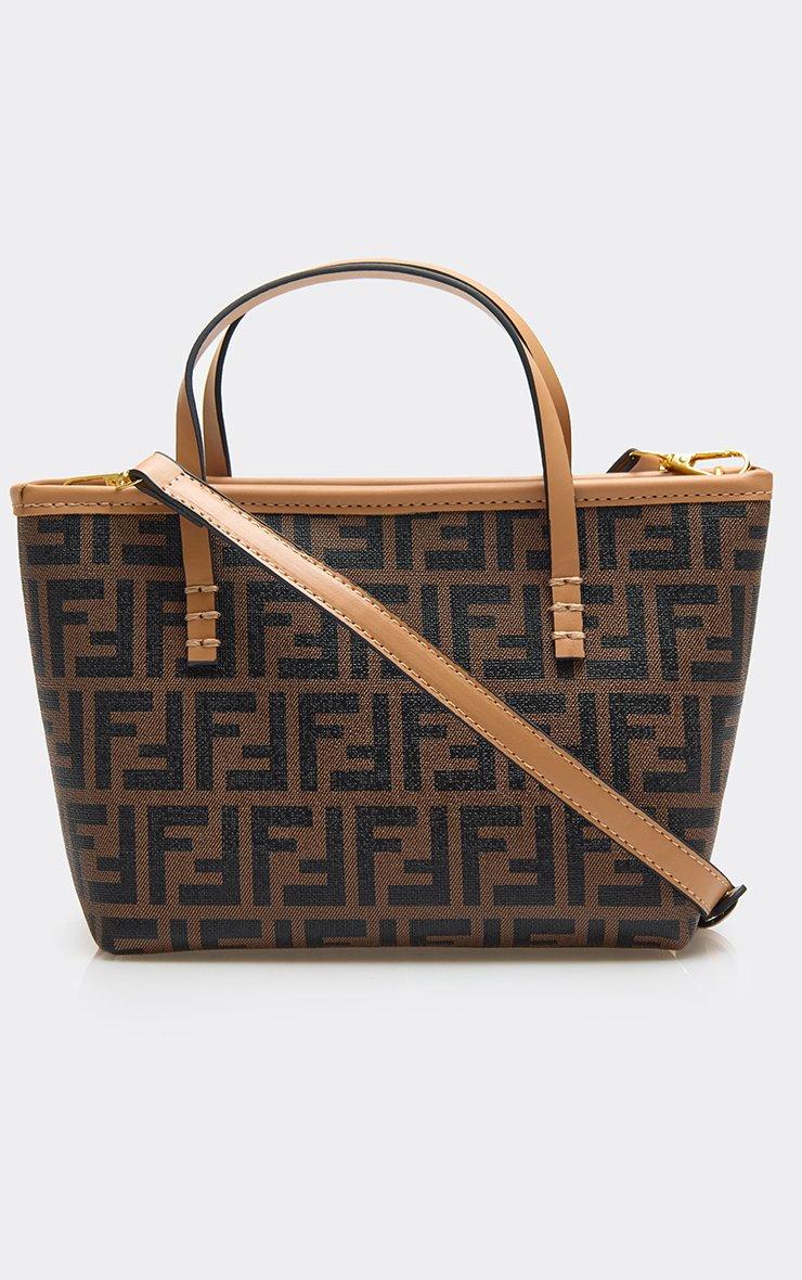 Glen Logo Detail Shaped Grab Bag In Tan Brown Faux Leather