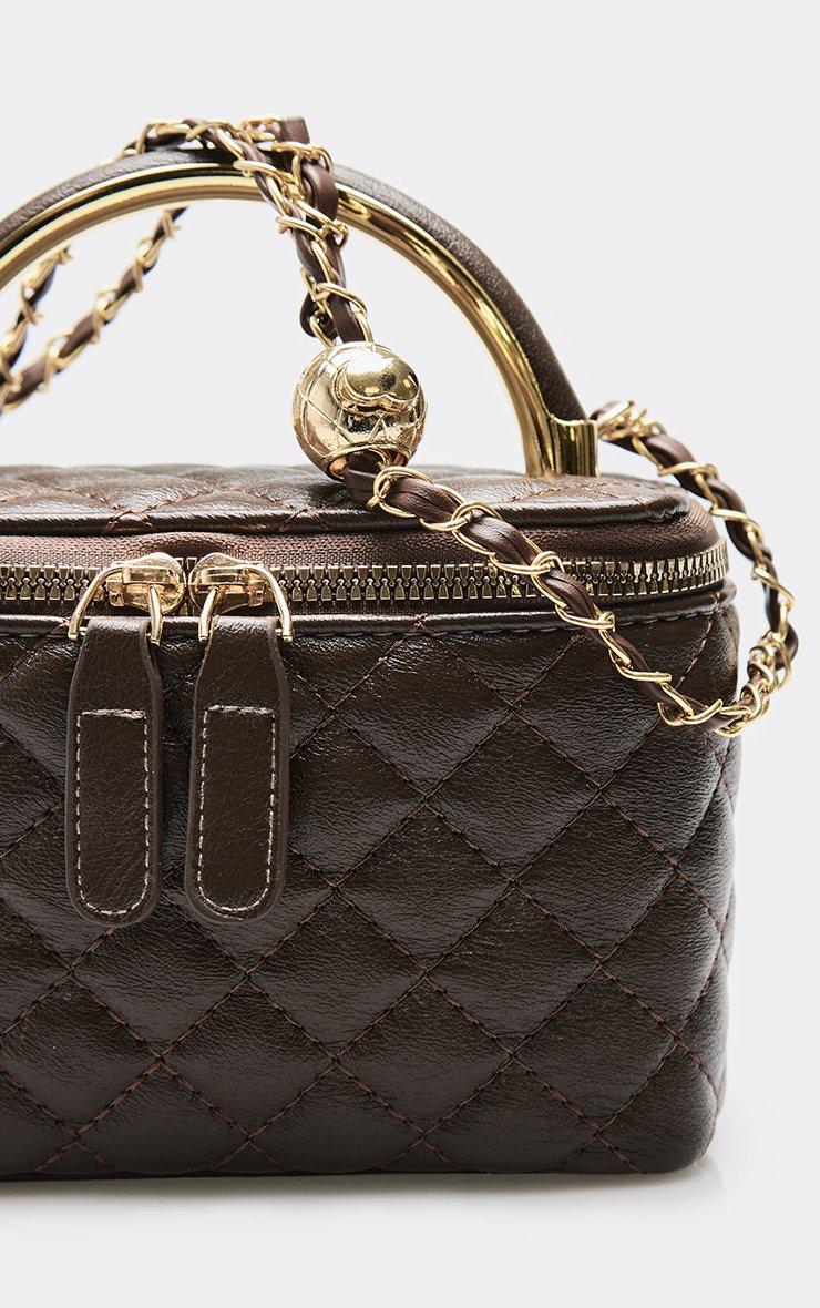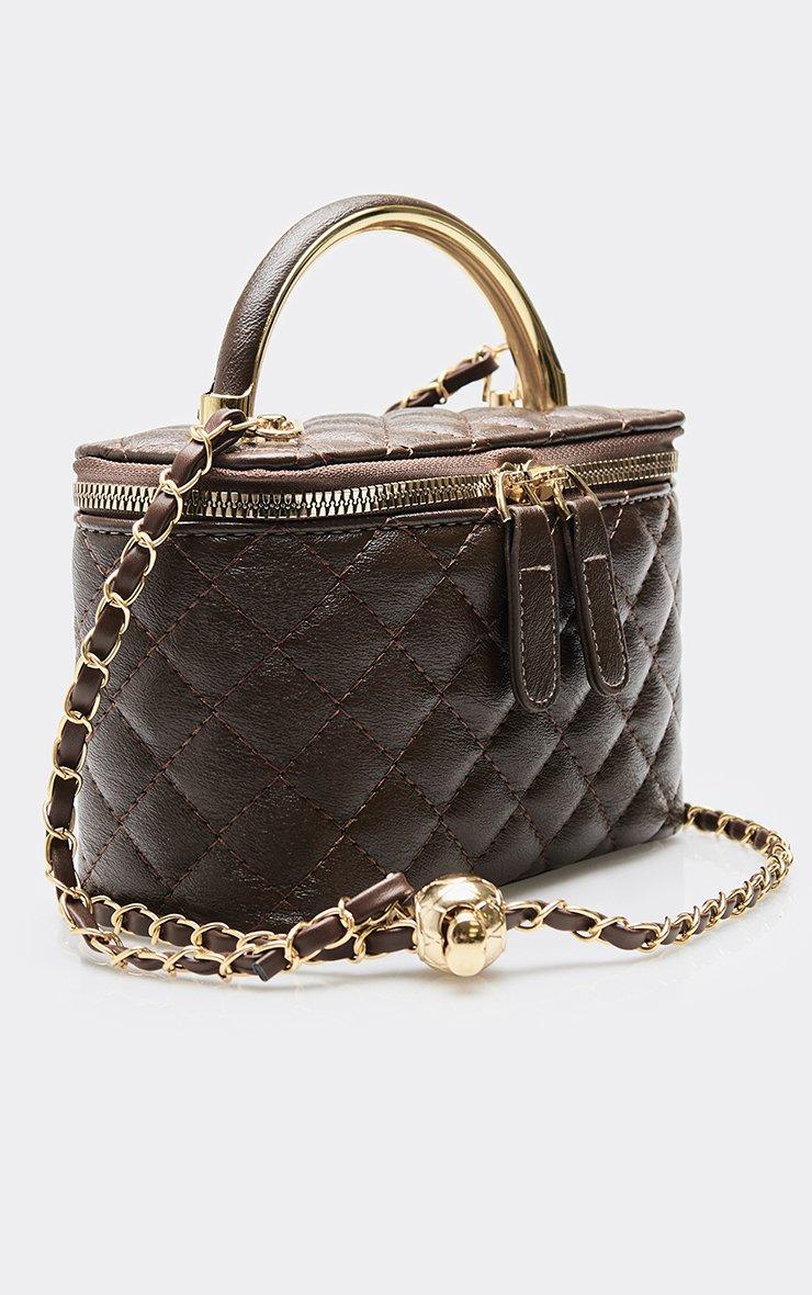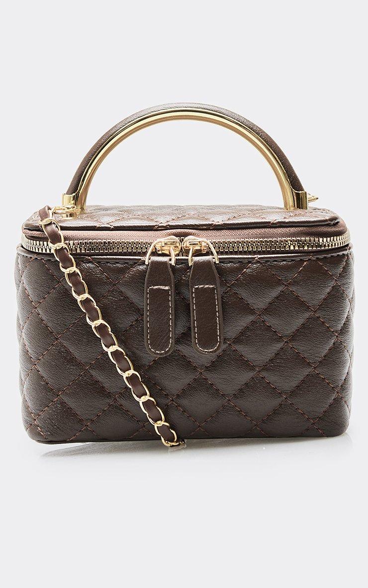 Julez Zip Detail Vanity Bag In Brown Quilted Faux Leather