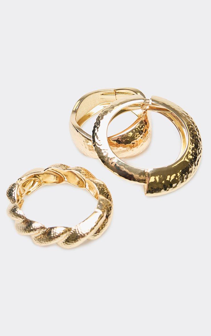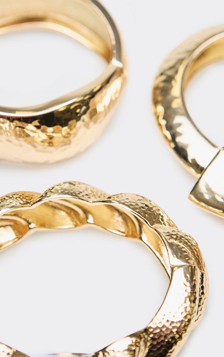 Twisted Hammered Detail Chunky Multi Bangle Pack In Gold