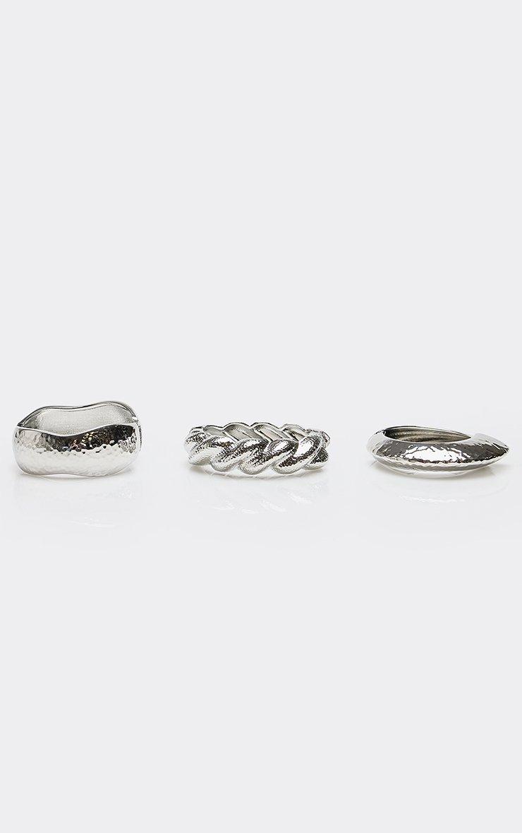 Twisted Hammered Detail Chunky Multi Bangle Pack In Silver