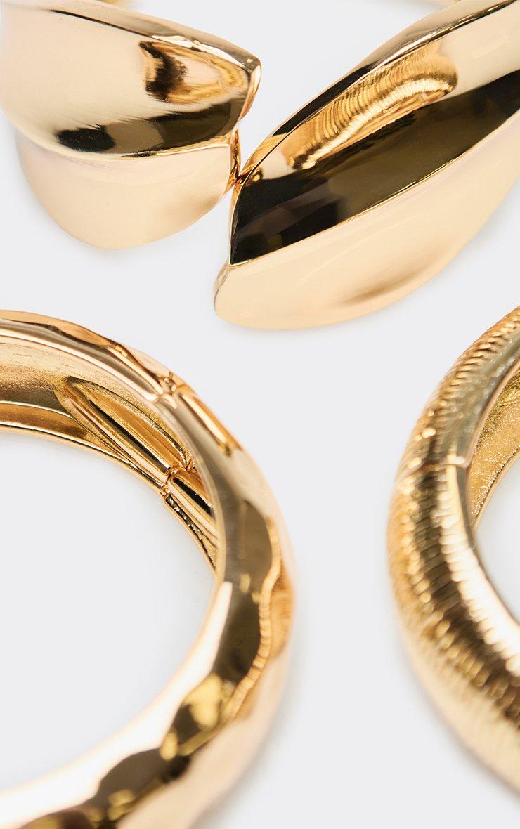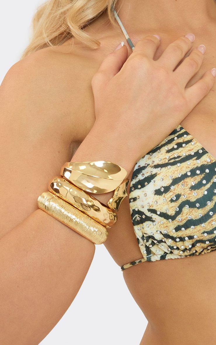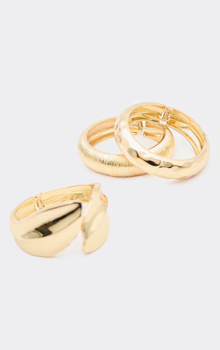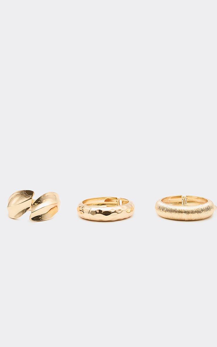 Cuff Textured Detail Chunky Multi Bangle Pack In Gold
