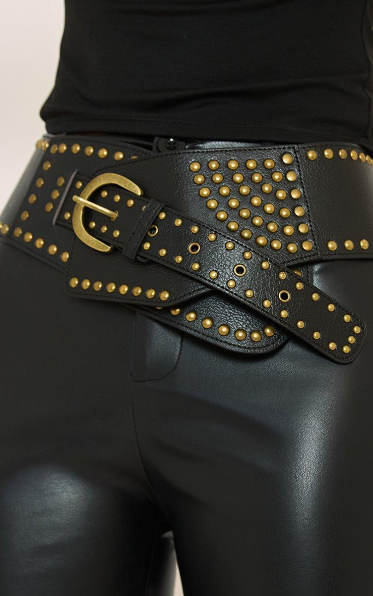 Oversized Stud Detail Chunky Belt In Black Faux Leather