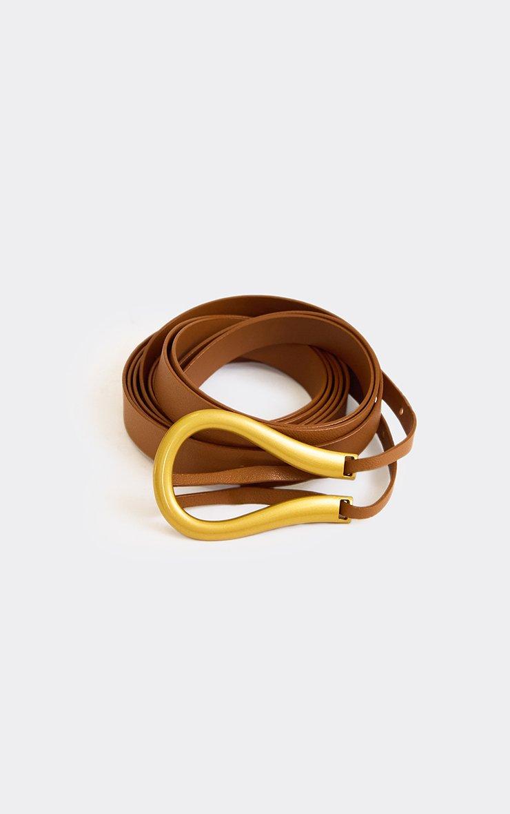 Contrast Buckle Detail Belt In Brown Faux Leather