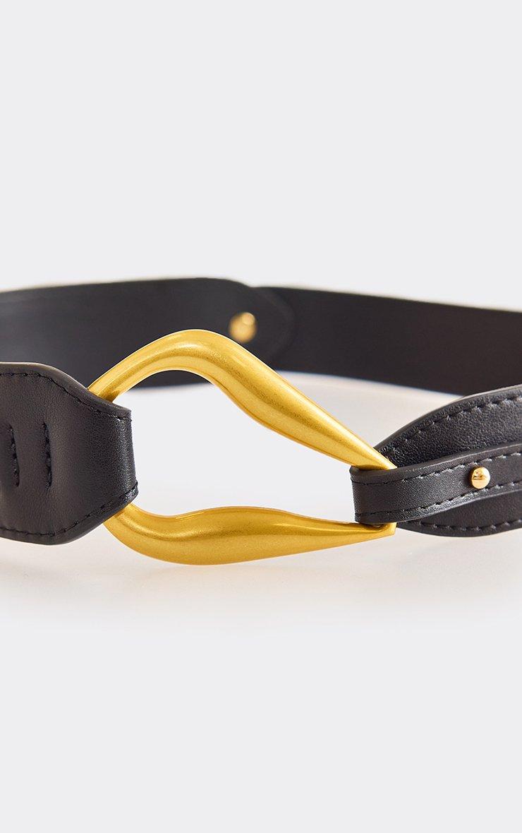 Eyelet Stud Detail Chunky Belt In Black Faux Leather