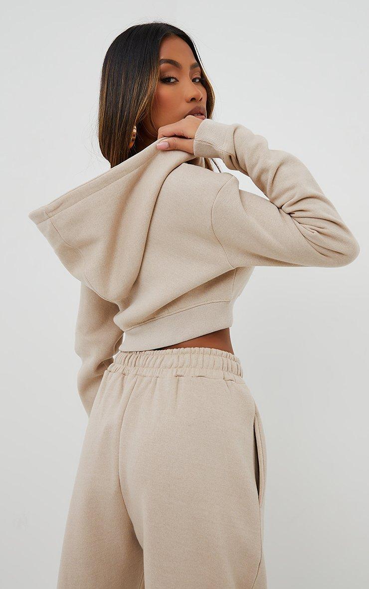 Long Sleeve Oversized Zip Detail Cropped Hoodie In Beige