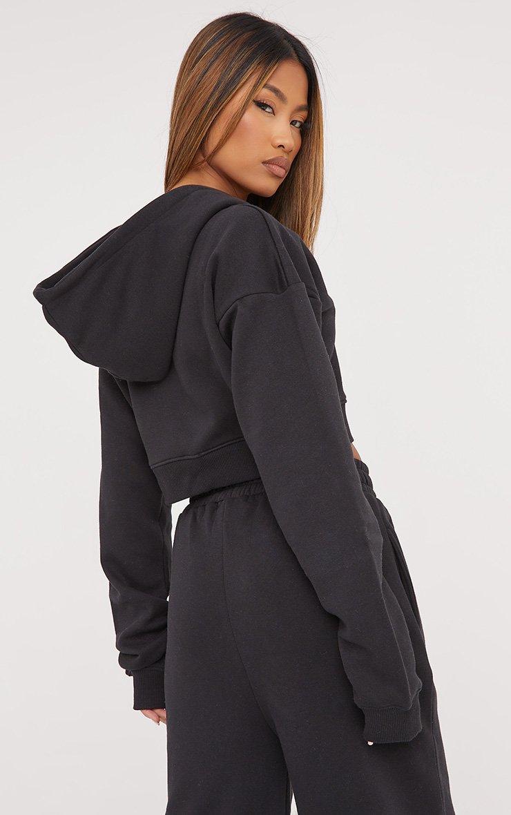 Long Sleeve Oversized Zip Detail Cropped Hoodie In Black