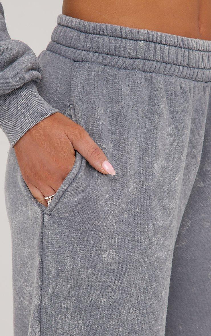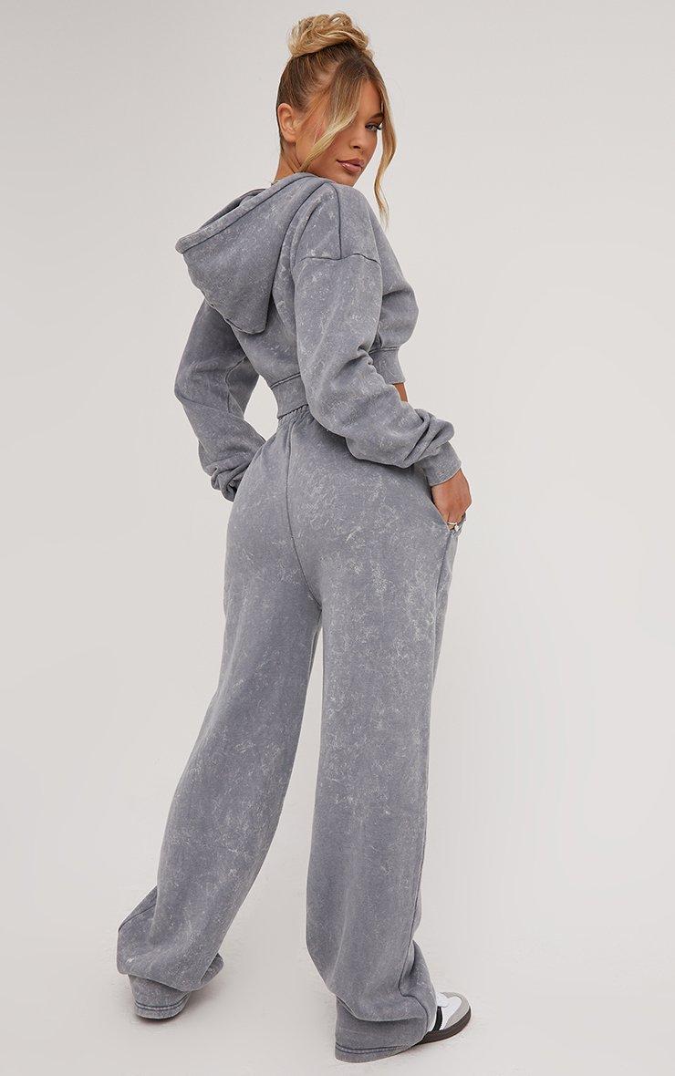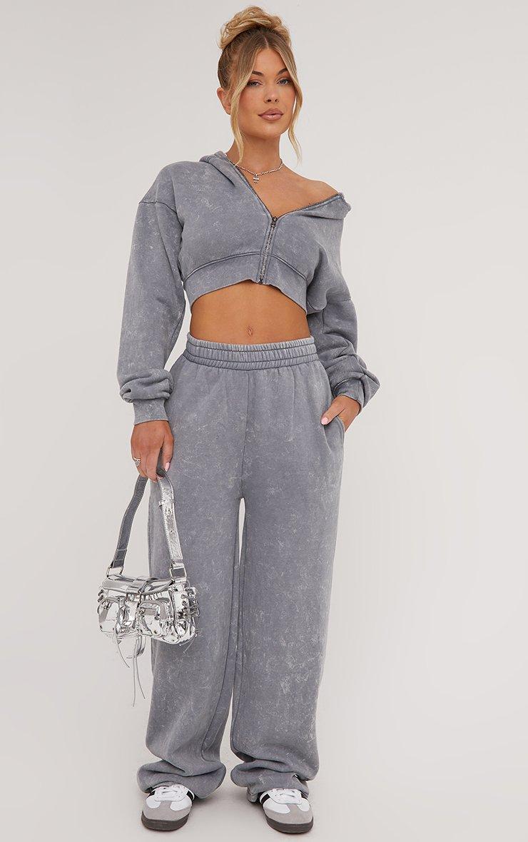 High Waist Oversized Wide Leg Joggers In Light Grey Acid Wash