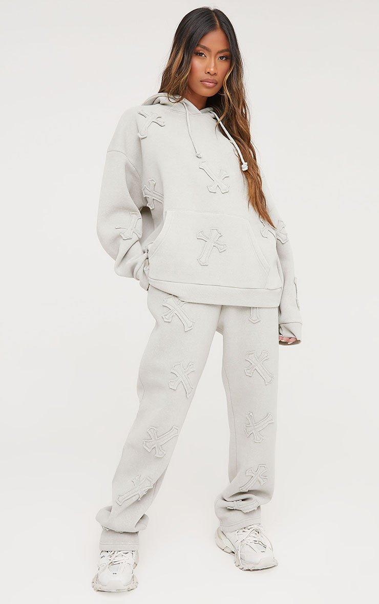 Cross Patch Detail Oversized Hoodie In Acid Wash Sage Green