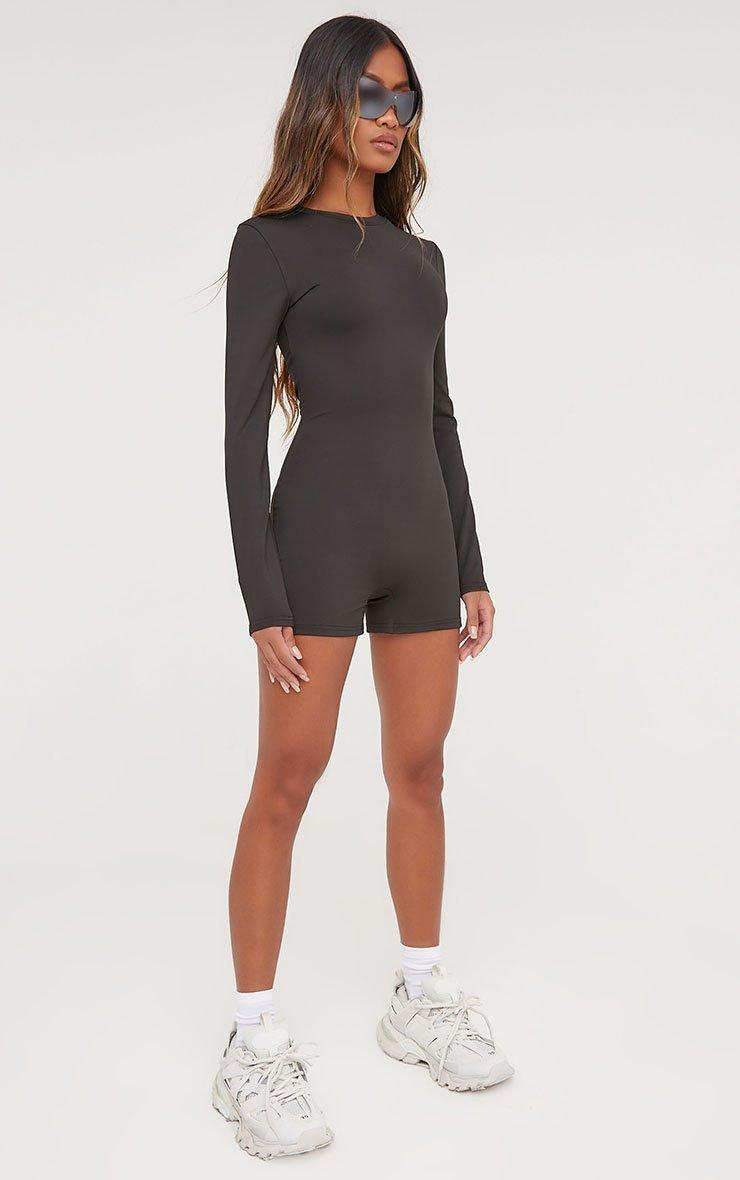 Long Sleeve Button Front Tailored Playsuit In Black