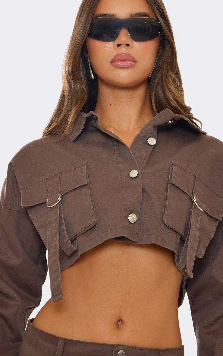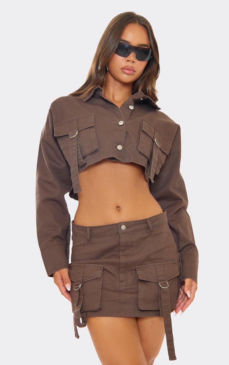 Oversized Belt Detail Cargo Style Cropped Jacket In Brown