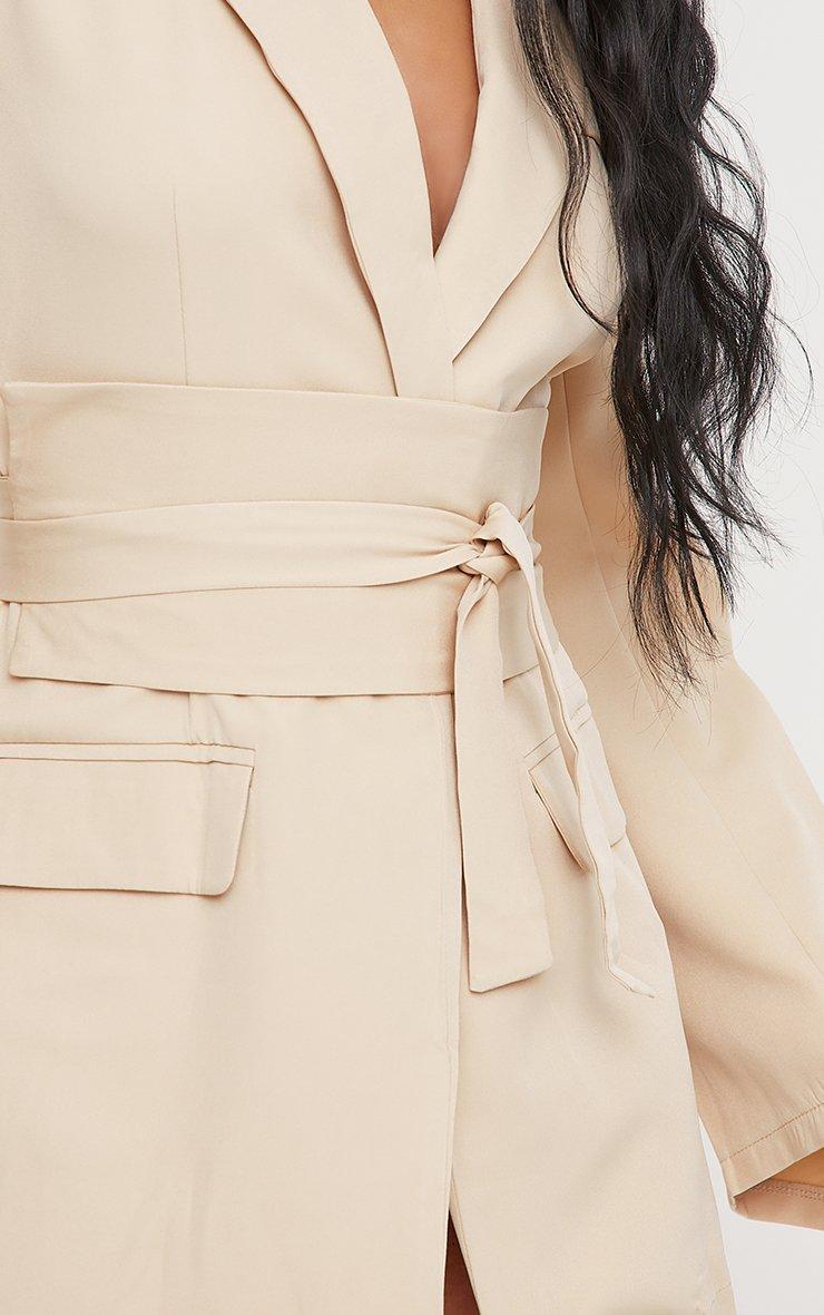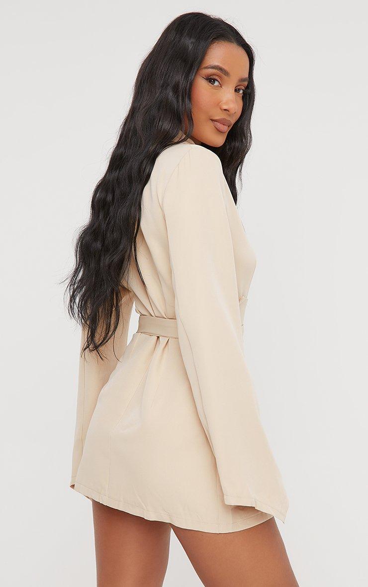 Oversized Shoulder Pad Cinched Waist Wool Look Blazer Dress In Stone