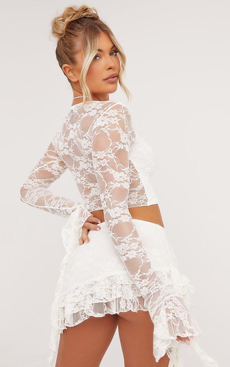 High Waist Frill Detail Mini Skirt In White Lace