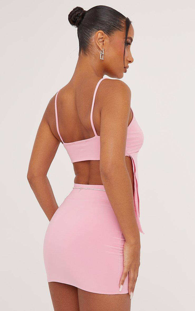 Tie Waist Contrast Trim Detail Mini Skirt In Pink