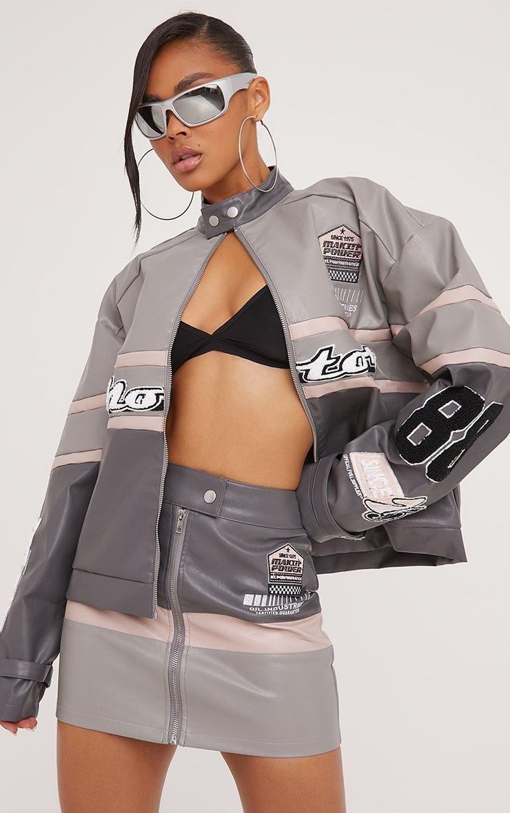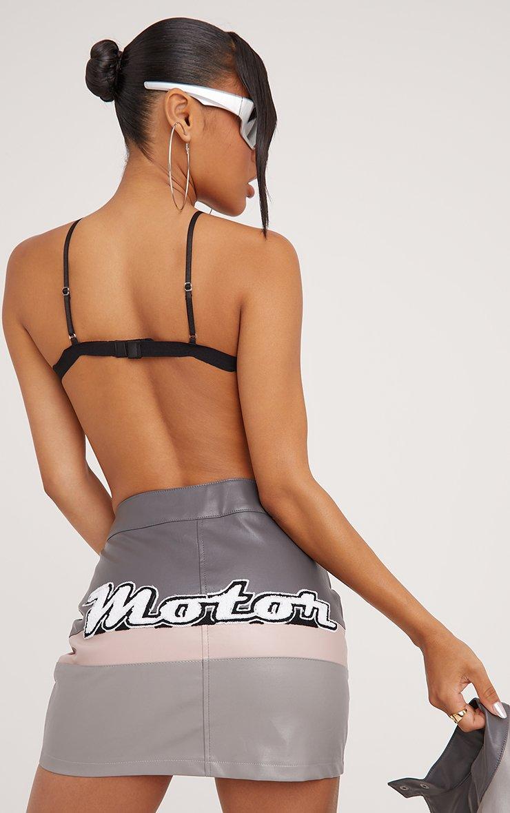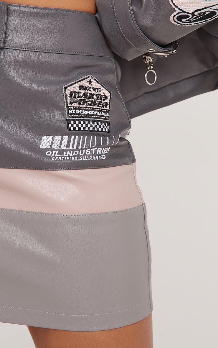 High Waist Motocross Detail Contrast Mini Skirt In Grey Faux Leather