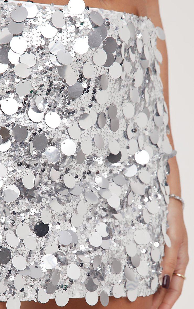Mid Rise Mini Skirt In Silver Tassel Sequin