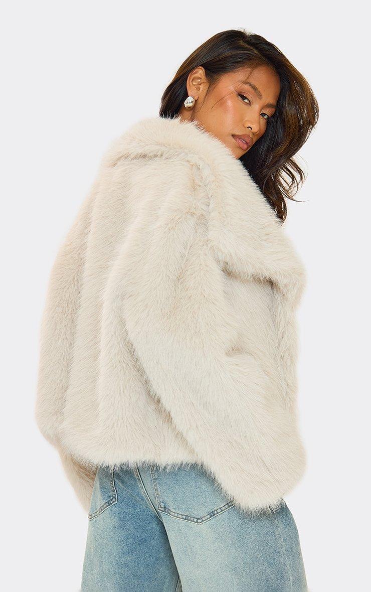 Oversized Collar Cropped Detail Jacket In Mink Faux Fur
