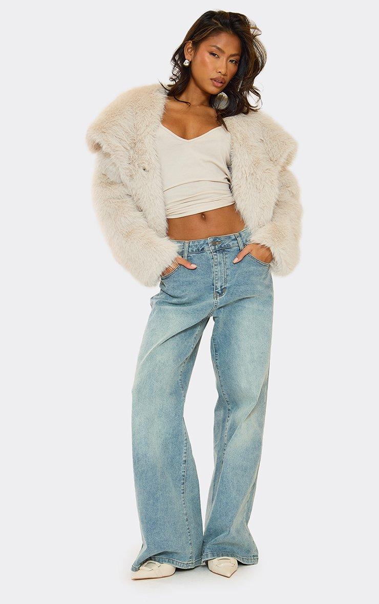Oversized Collar Cropped Detail Coat In Mink Faux Fur
