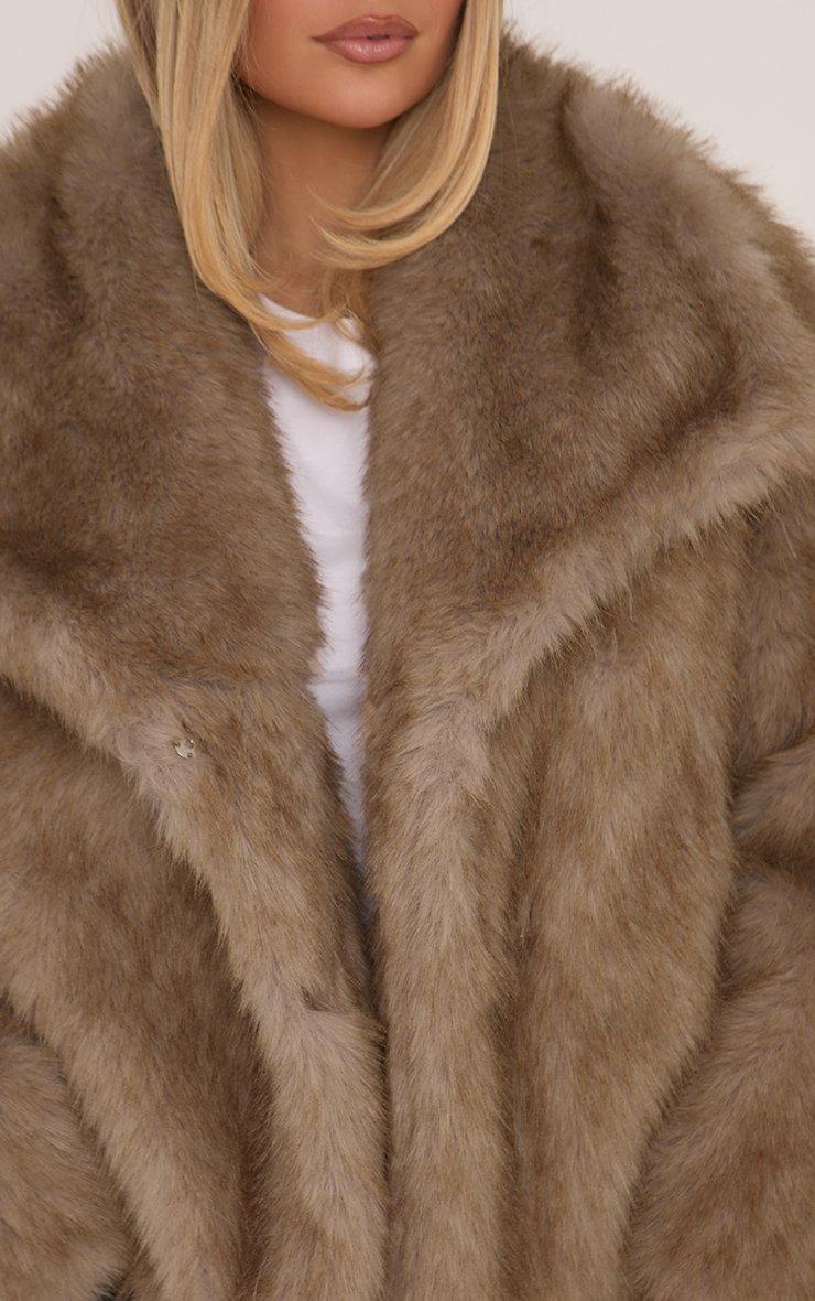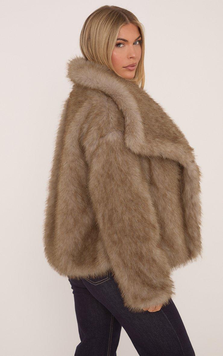 Oversized Collar Detail Jacket In Chocolate Brown Faux Fur