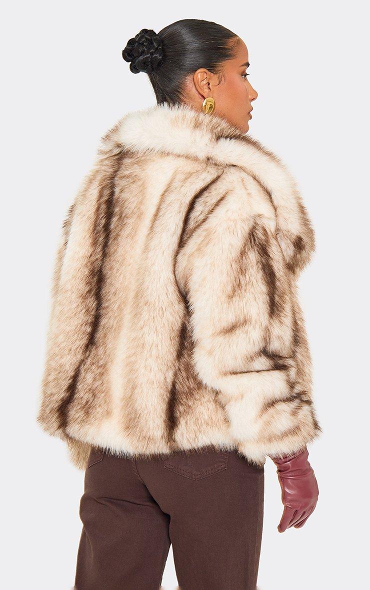 Oversized Collar Detail Cropped Jacket In Cream And Brown Stripe Faux Fur
