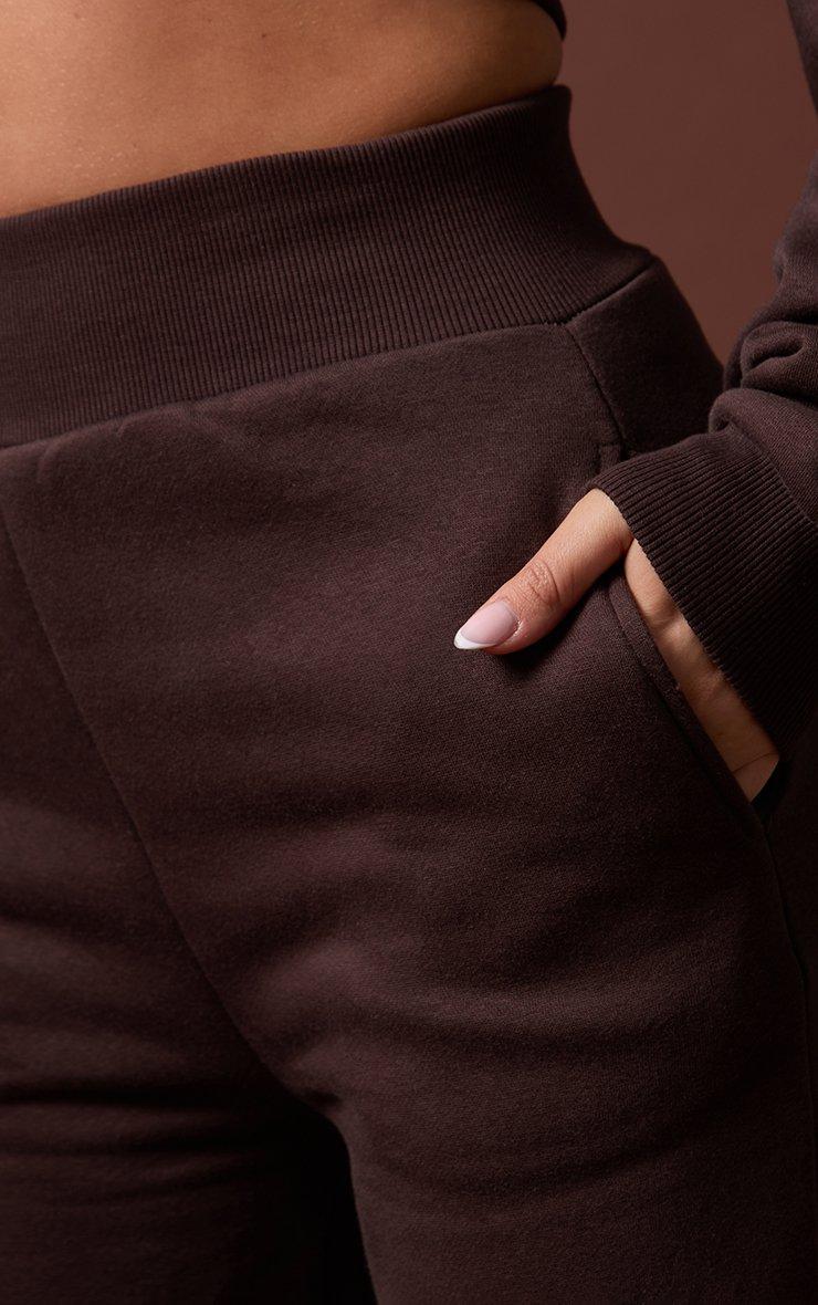 Fold Over Waist Wide Leg Joggers In Chocolate
