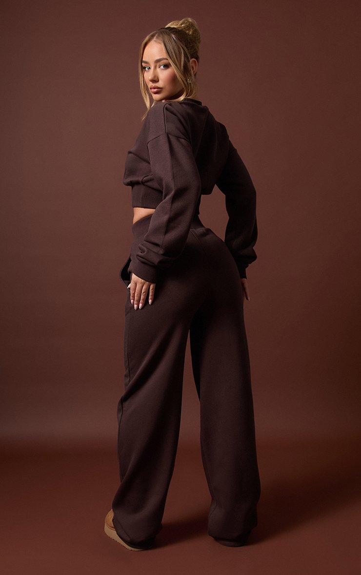 Elasticated Waist Wide Leg Joggers In Chocolate Brown