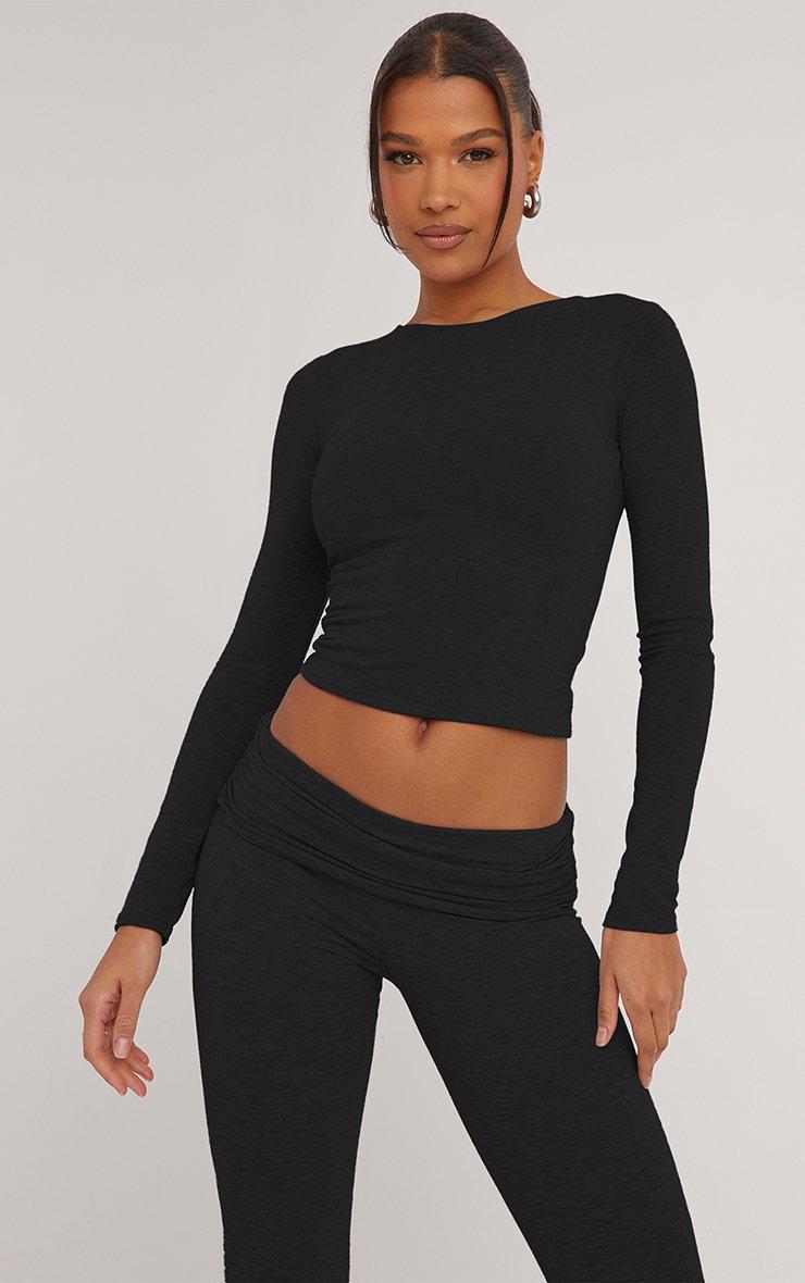 Long Sleeve Crew Neck Top In Black
