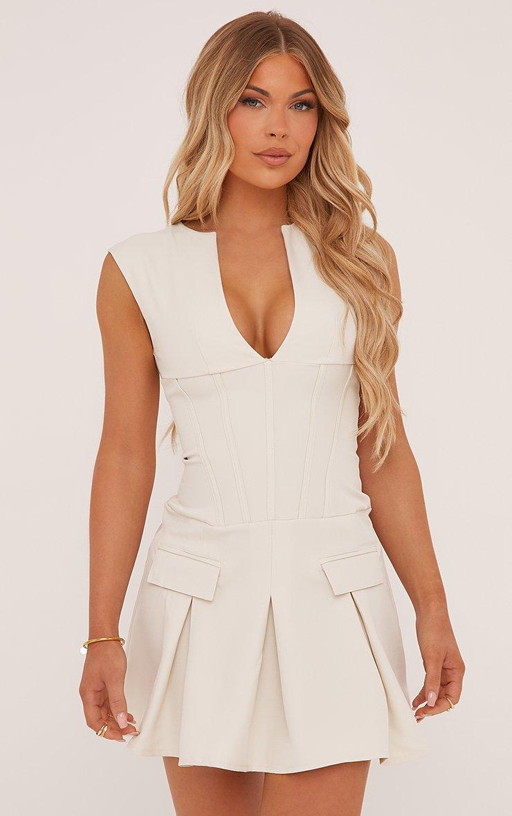 Underwire Sculpt Detail Mini Dress In Nude
