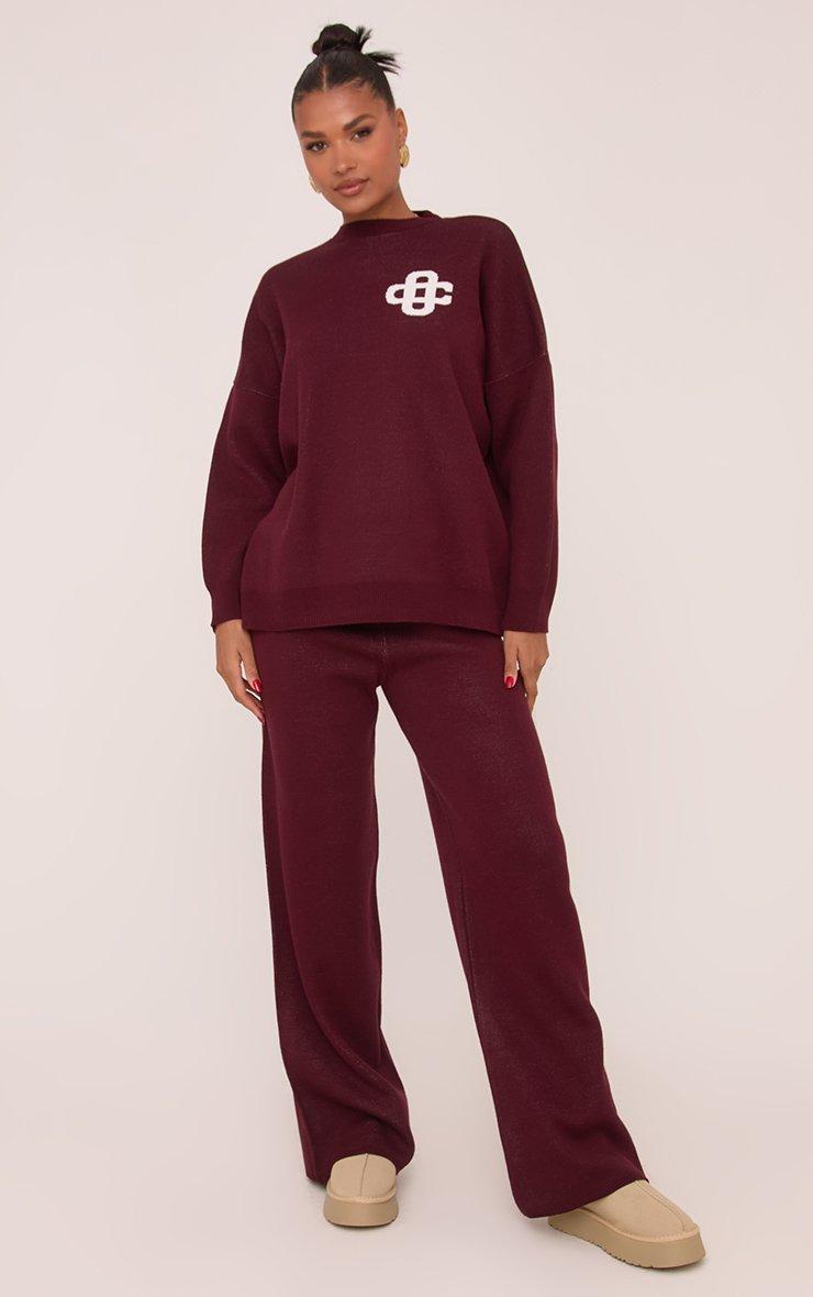 Mid Waist Ego Graphic Straight Leg Trousers In Burgundy Knit