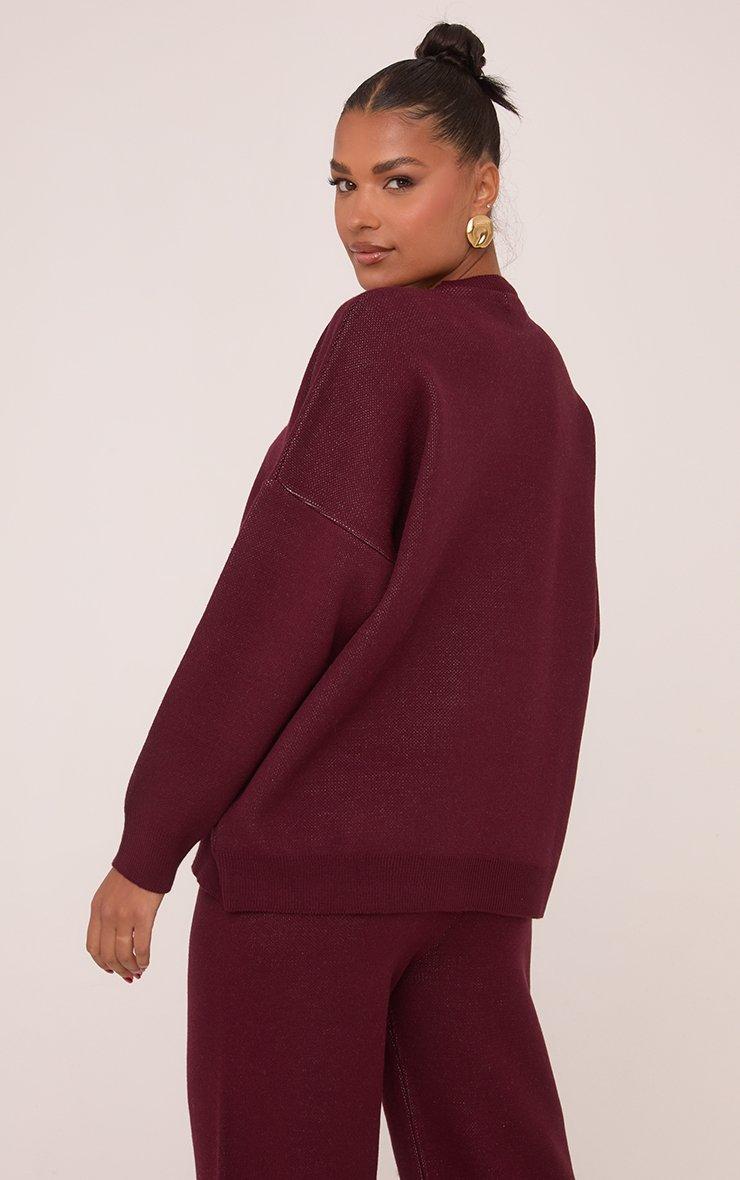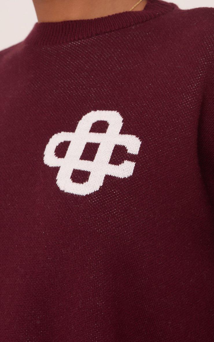 Long Sleeve Crew Neck Ego Graphic Oversized Jumper In Burgundy Knit