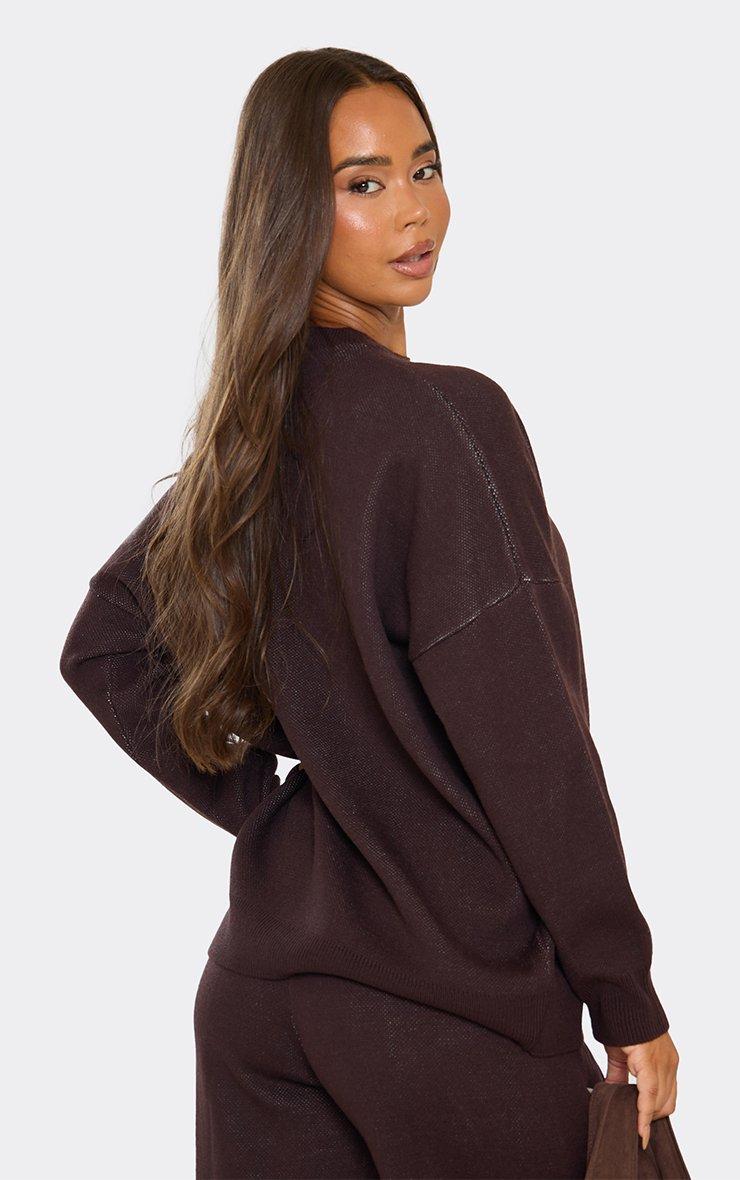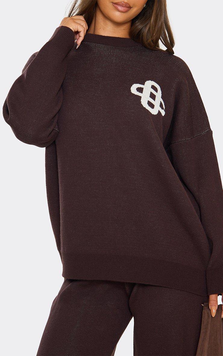 Oversized Embroidered Ego Logo Detail Jumper In Chocolate Brown Knit