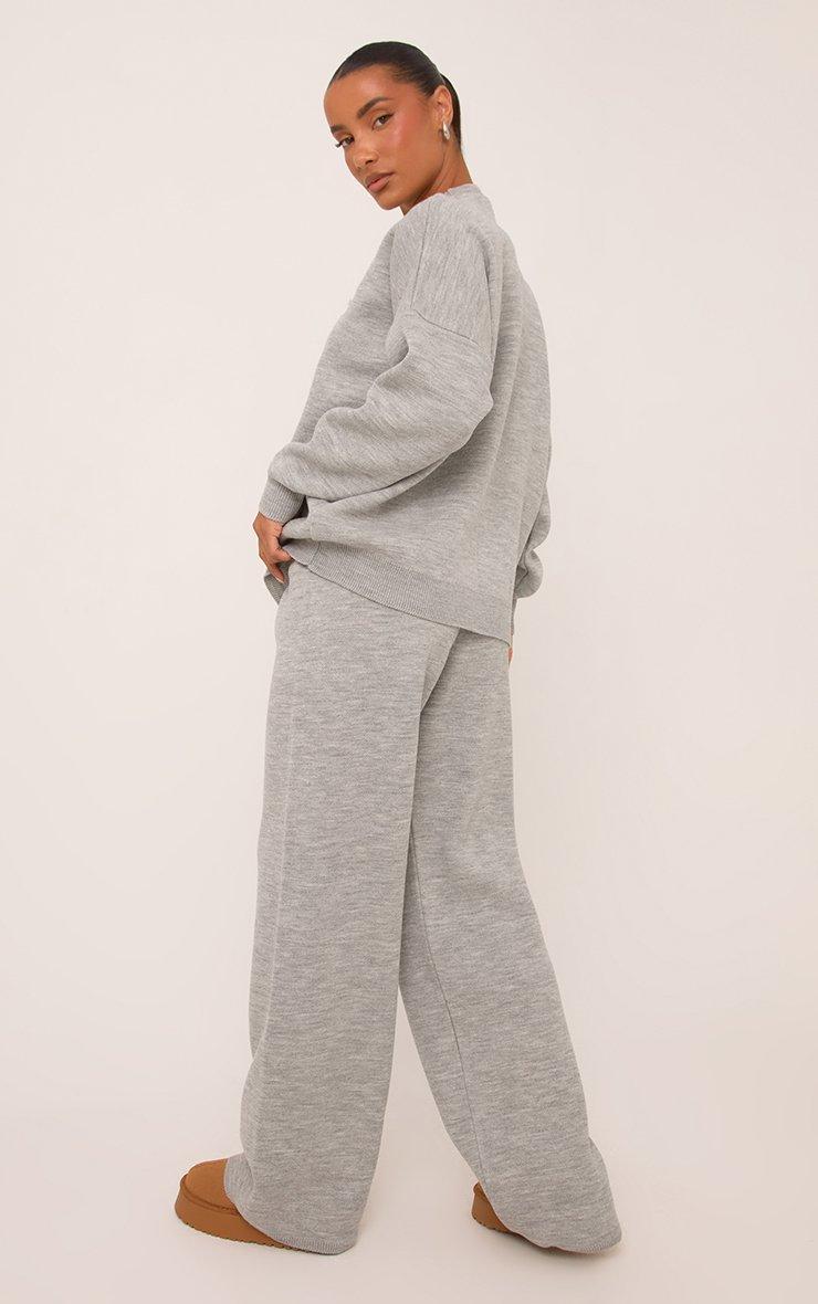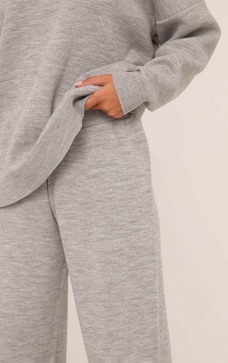 High Waist Contrast Swirl Detail Wide Leg Joggers In Grey Marl Knit