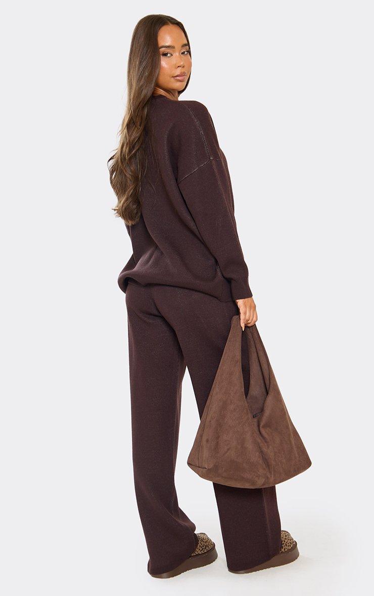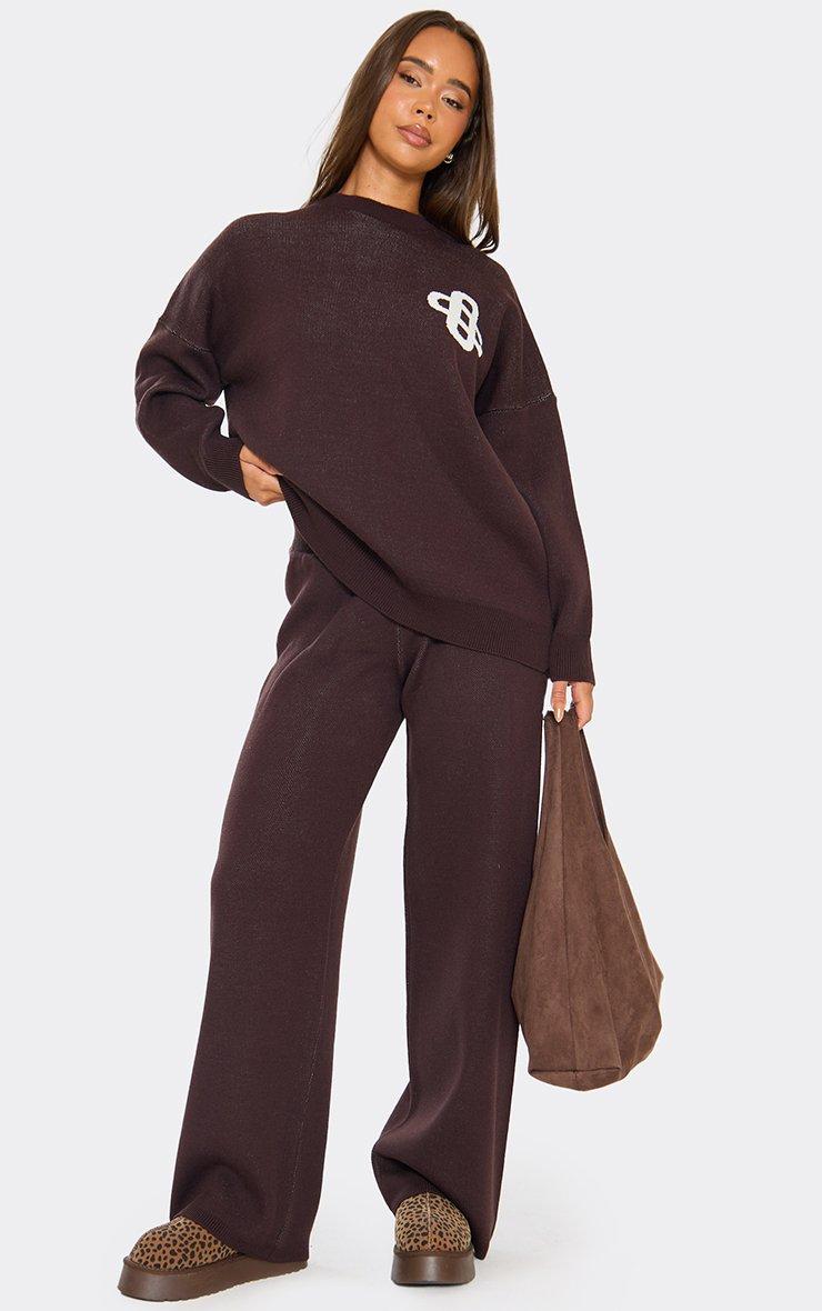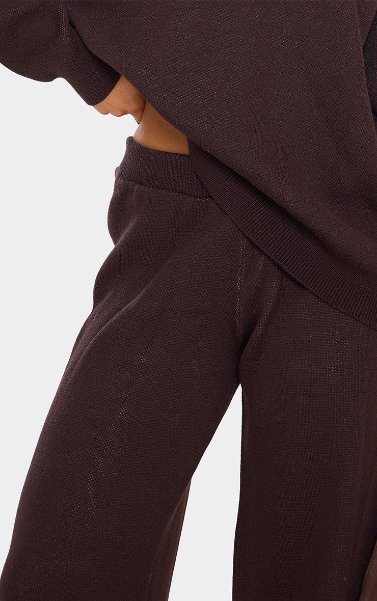High Waist Wide Leg Joggers In Chocolate Brown Knit
