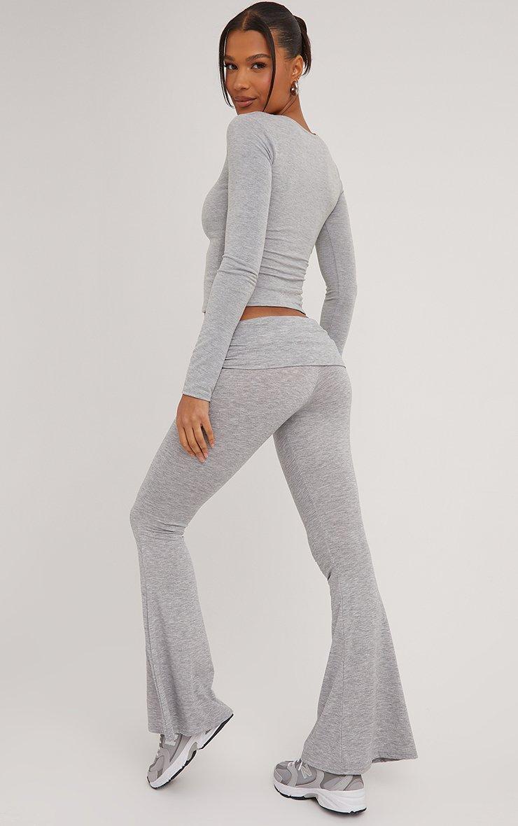 Low Rise Button Detail Straight Light Joggers In Light Grey Marl