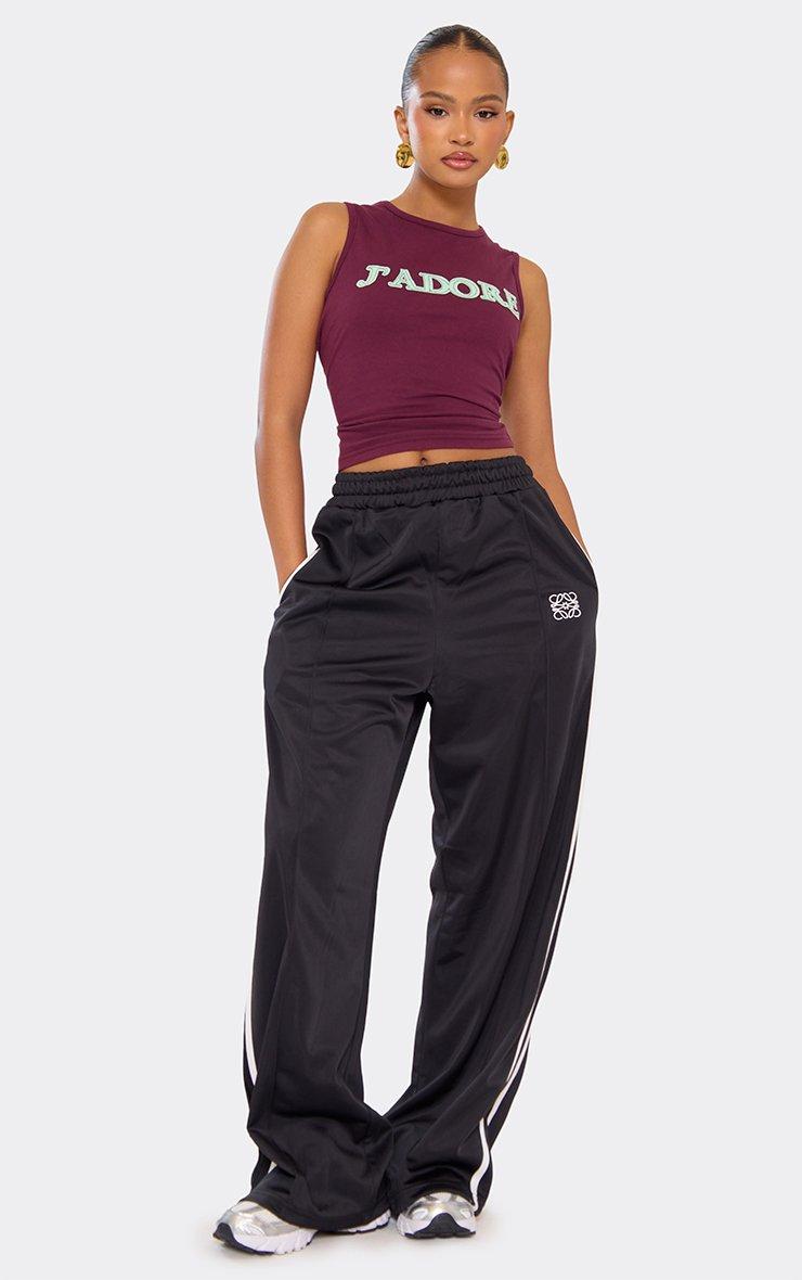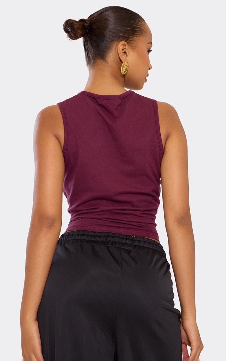Contrast Slogan Print Vest Top In Burgundy