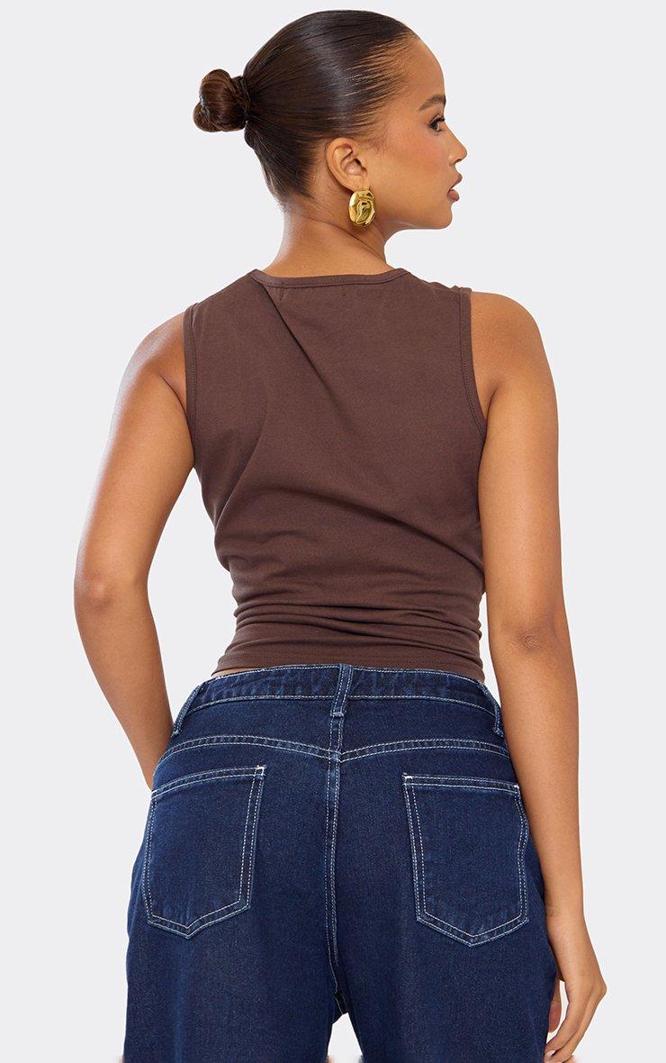 V Neck Cinched Waist Fitted T-Shirt In Brown