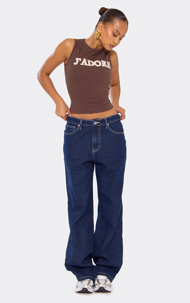 Long Sleeve Contrast Detail Curved Hem Football Top In Chocolate Brown
