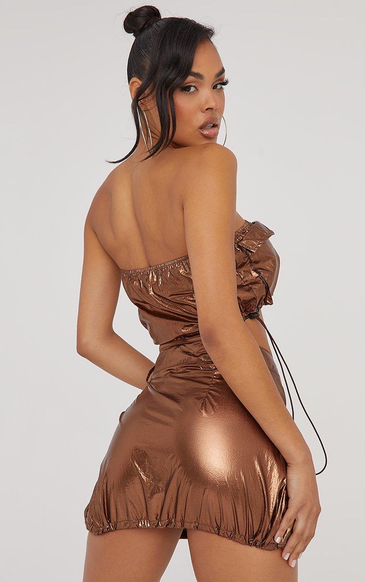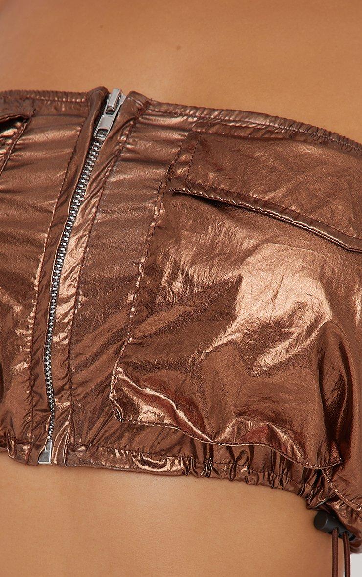 Bandeau Pocket Zip Front Detail Crop Top In Bronze Metallic