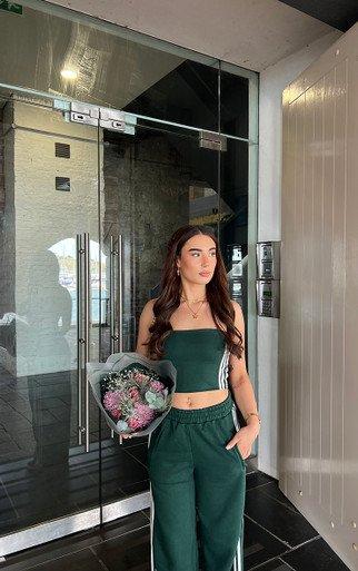 Bandeau Contrast Stripe Detail Top In Forest Green