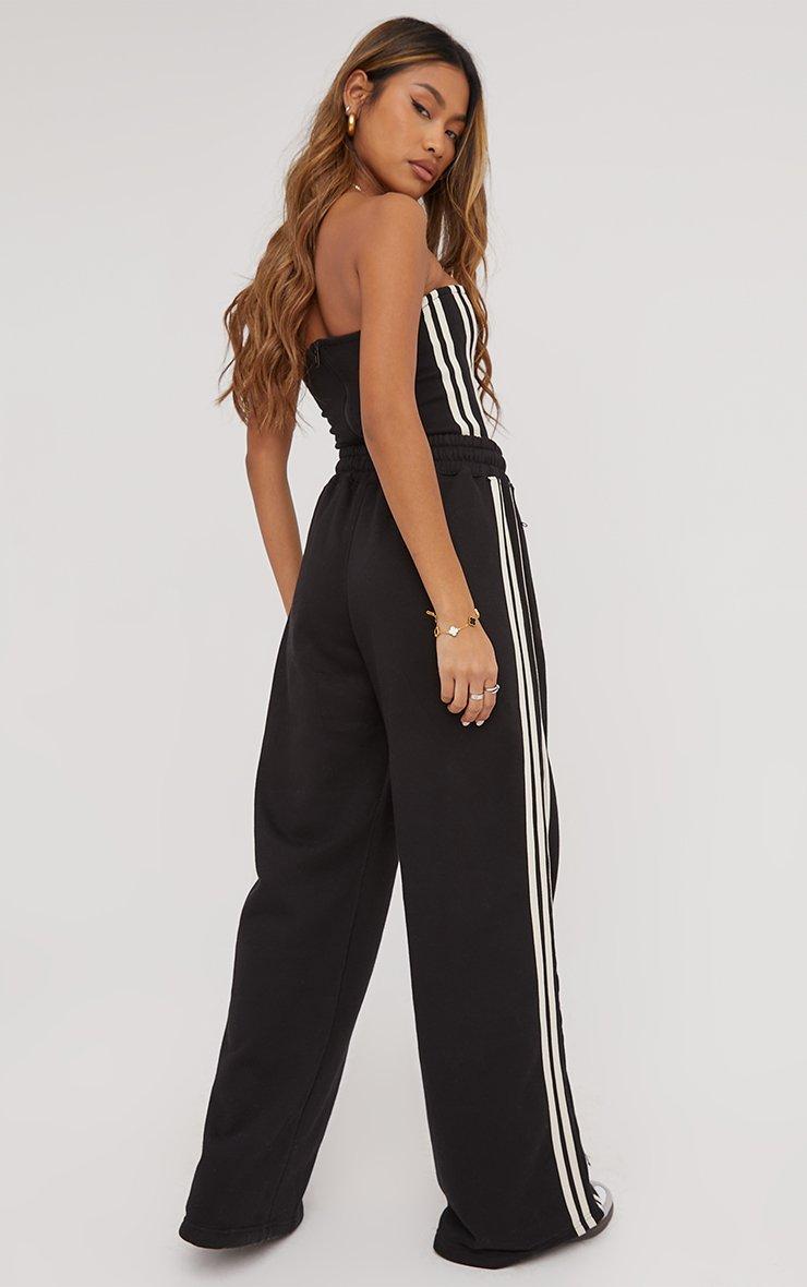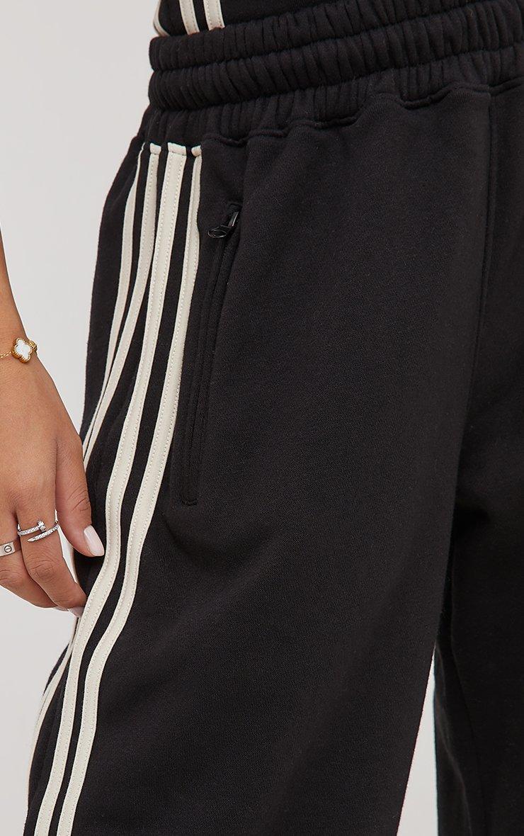 High Waist Contrast Stripe Detail Wide Leg Joggers In Black