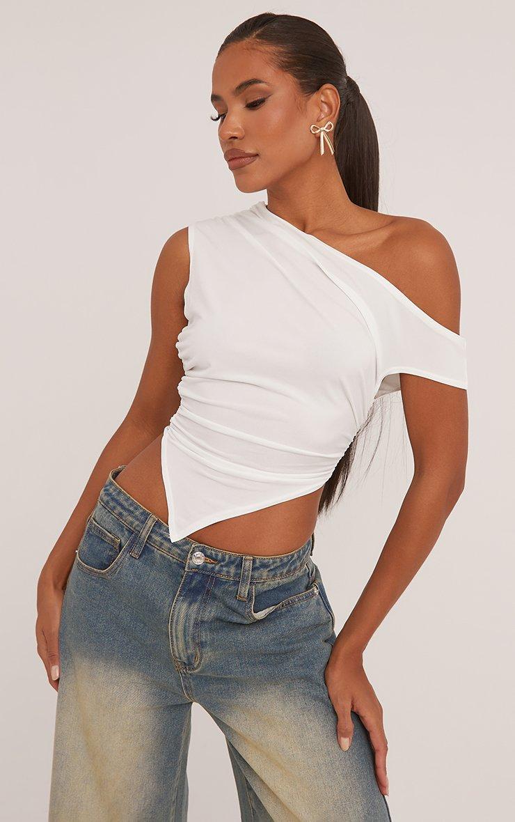 Slouchy One Shoulder Ruched Detail Top In Cream